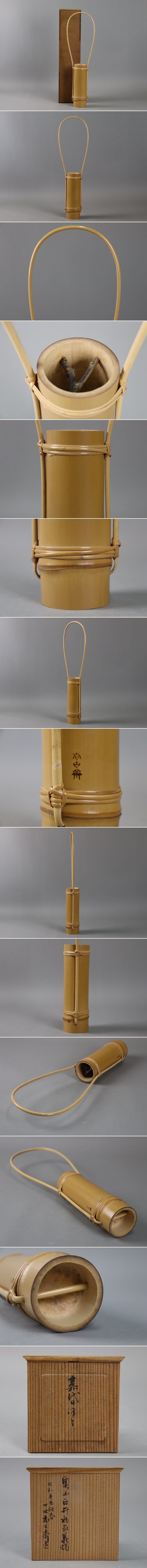四世 尚古斎造 白竹 嘉代日花生 高54,5cm 共箱 手付 茶道具 細密細工 古美術品[d286] 收藏