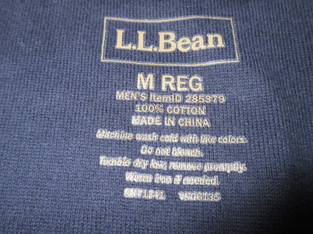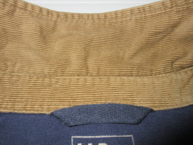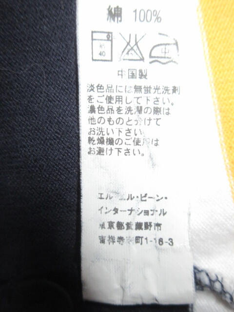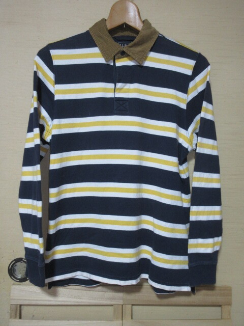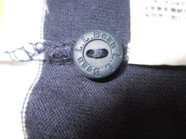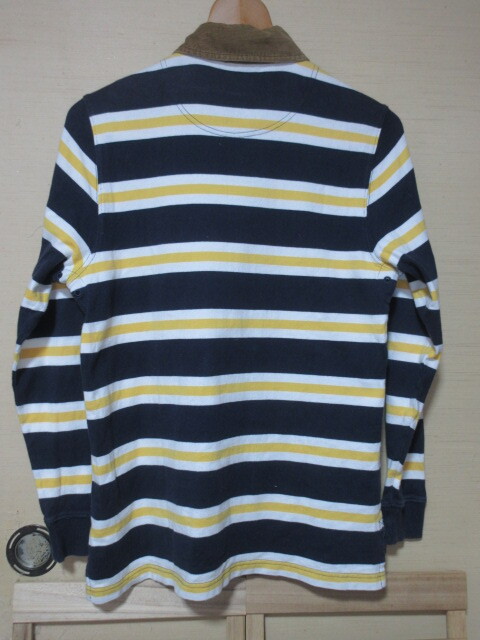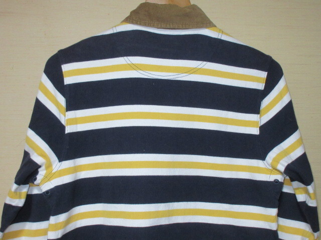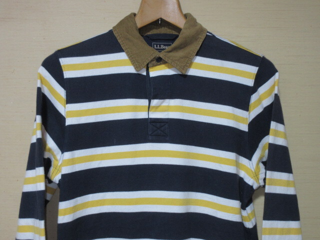 L.L.Bean エルエルビーン 長袖ラガーシャツ ネイビー地/ホワイト&イエロー/ボーダー 襟コーデュロイ M 綿100% 予備釦1ヶ 收藏