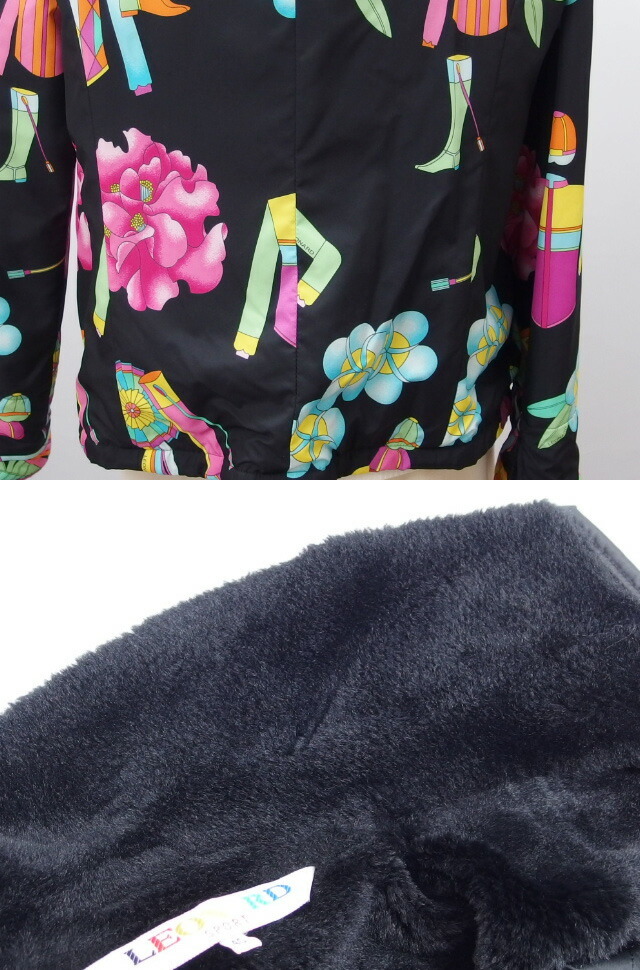 | コメント | 黒地に鮮やかな色合いで花柄やスポーツアイコンが描かれた、お洒落なボアブルゾンをご紹介致します。内側はボア素材で暖かく、コーディネートのアクセントにもピッタリなアウターです。外ポケットはファスナーx2あります。 |