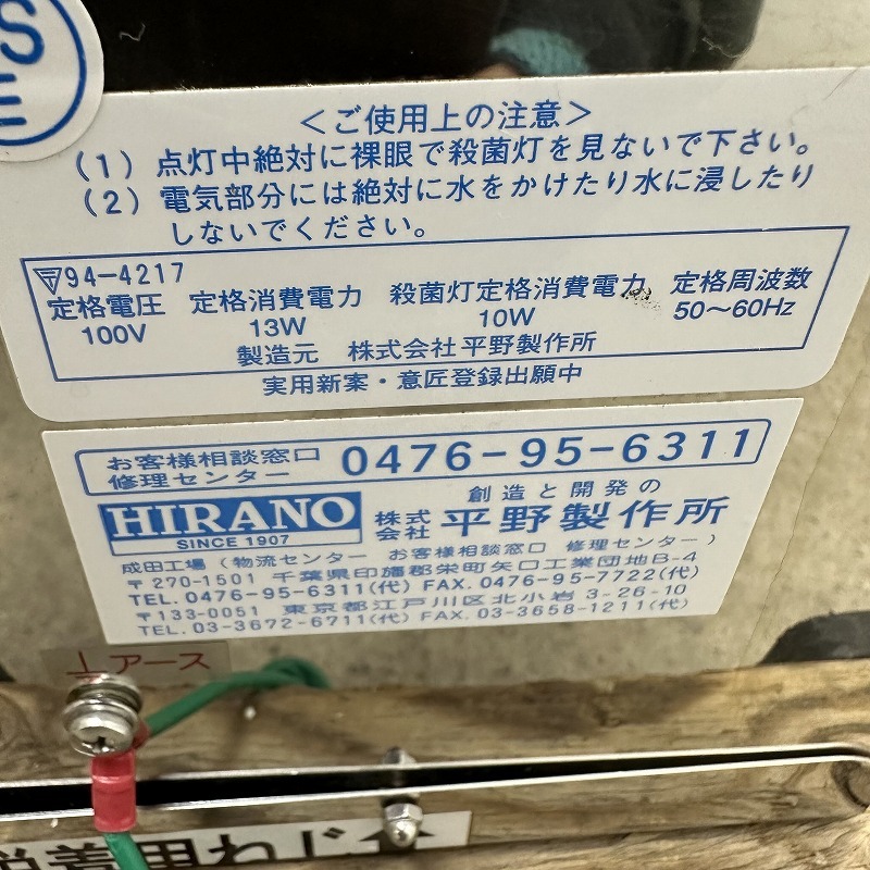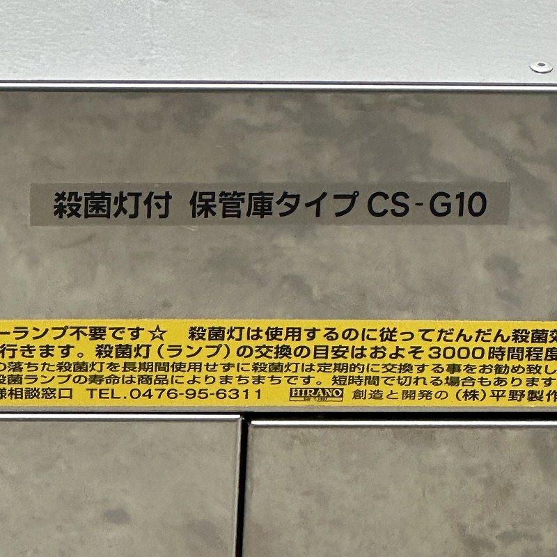 ★ED0305 | 消毒保管庫 電気式 2021年製 平野製作所 CS-G10 100V W500×D150×H700mm 中古 業務用 收藏