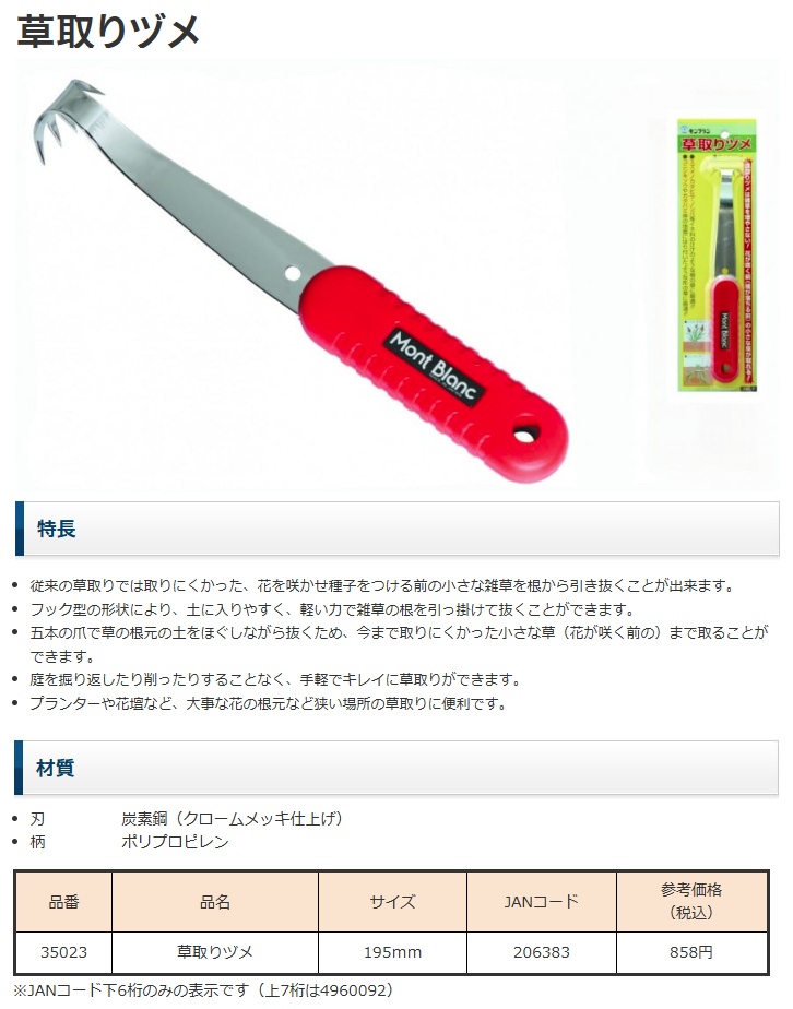 清水製作所 品番35023 草取りヅメ 195MM モンブラン Mont Blanc 206383 小型便 收藏