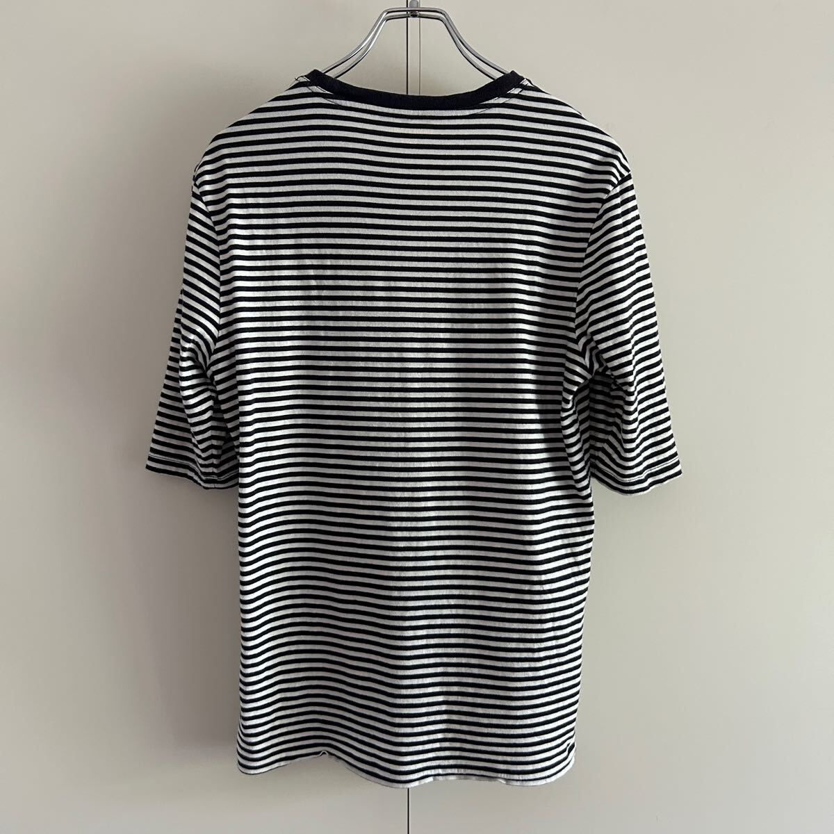 やや長めの袖にピッチの細かなボーダーが実に大人っぽい一枚