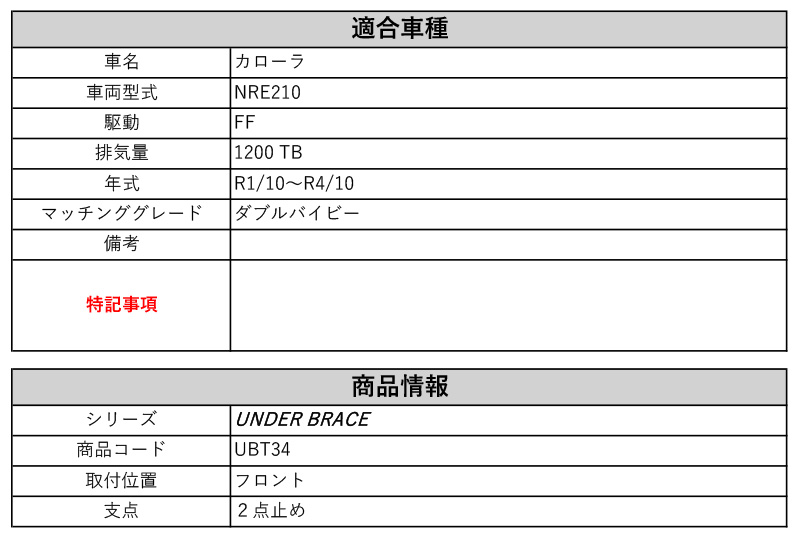 [tanabe×SUSTEC]NRE210 カローラ_フロント(2WD_1200 TB_R1/10~R4/10)用アンダーブレース[UBT34] 收藏
