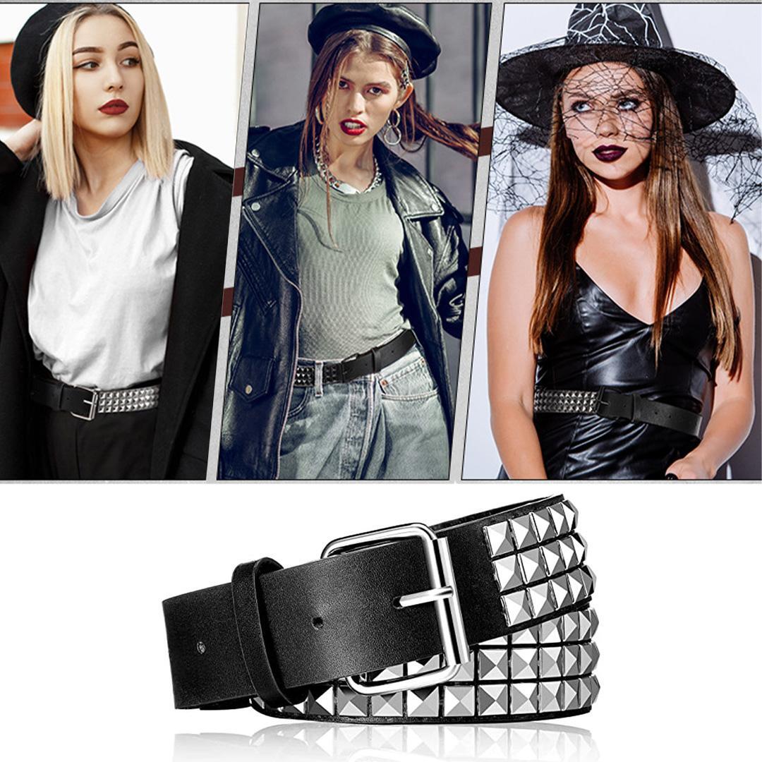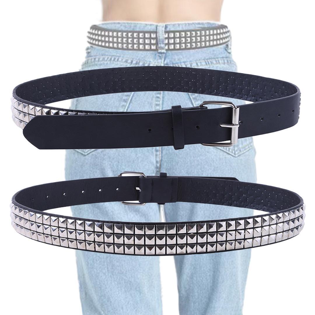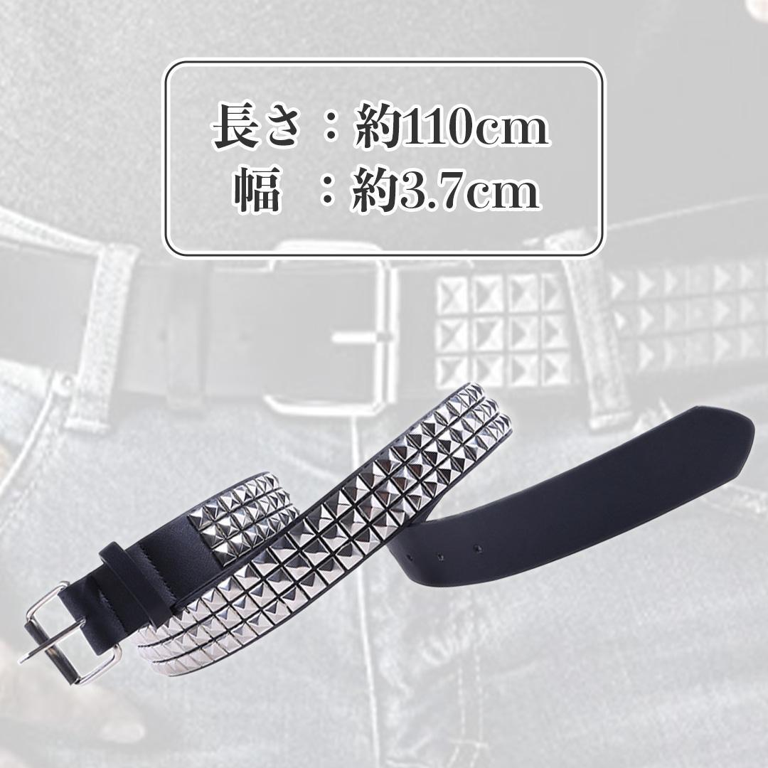 この商品は、PUレザー製で、大きめのスタッズが施されています。ベルトの幅は3.5cmで、男女問わずお使いいただけます。