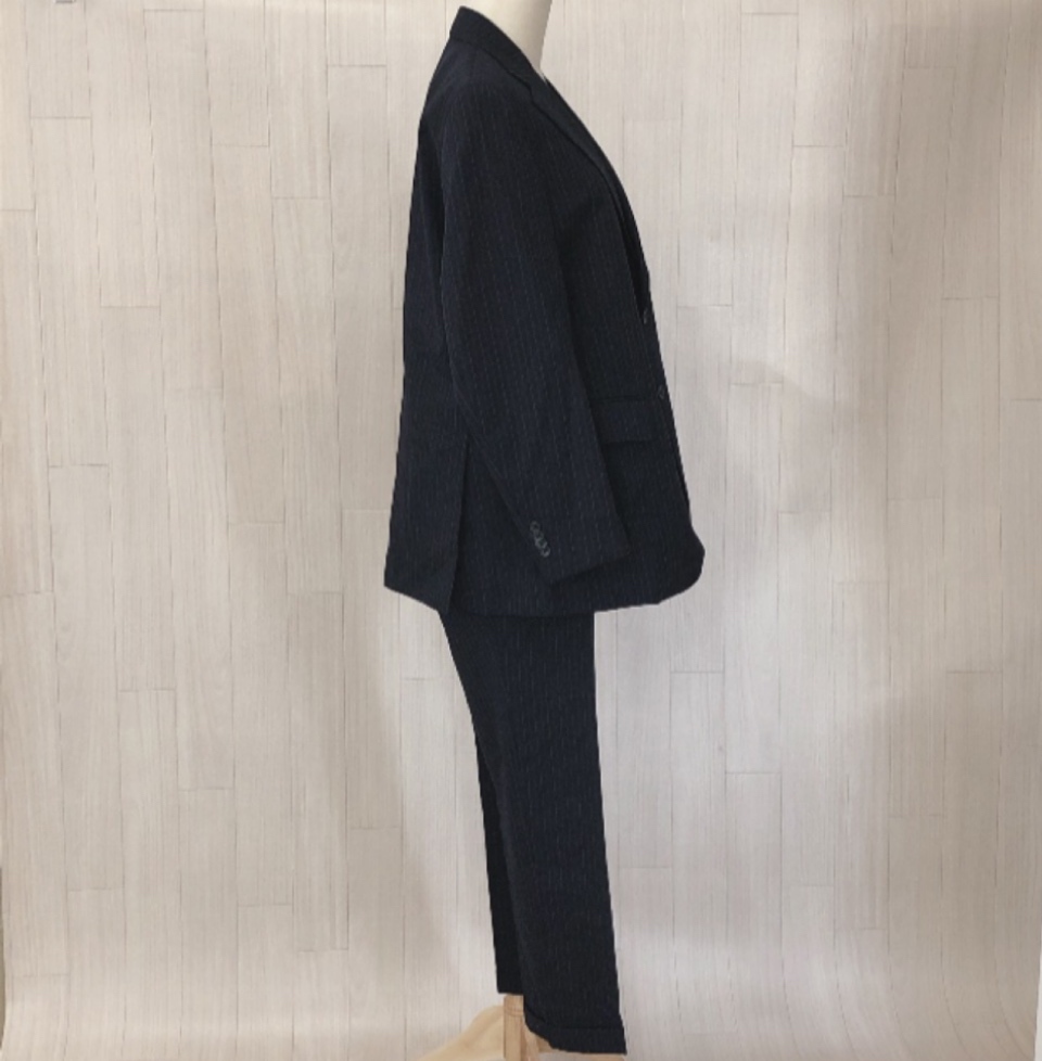 X2007 lesliegrant メンズ スーツ セットアップ 厚手 ブラック 黒 ブルー 青 ストライプ 毛素材含 オフィススタイル 男前 上品 クール秋冬 收藏