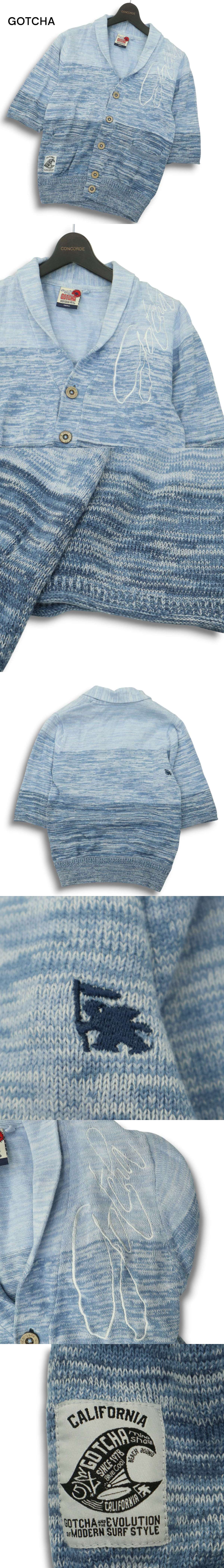 GOTCHA ガッチャ 通年 ロゴ刺繍★ ショールカラー 5分袖 グラデーション ニット カーディガン Sz.S メンズ サーフ 收藏