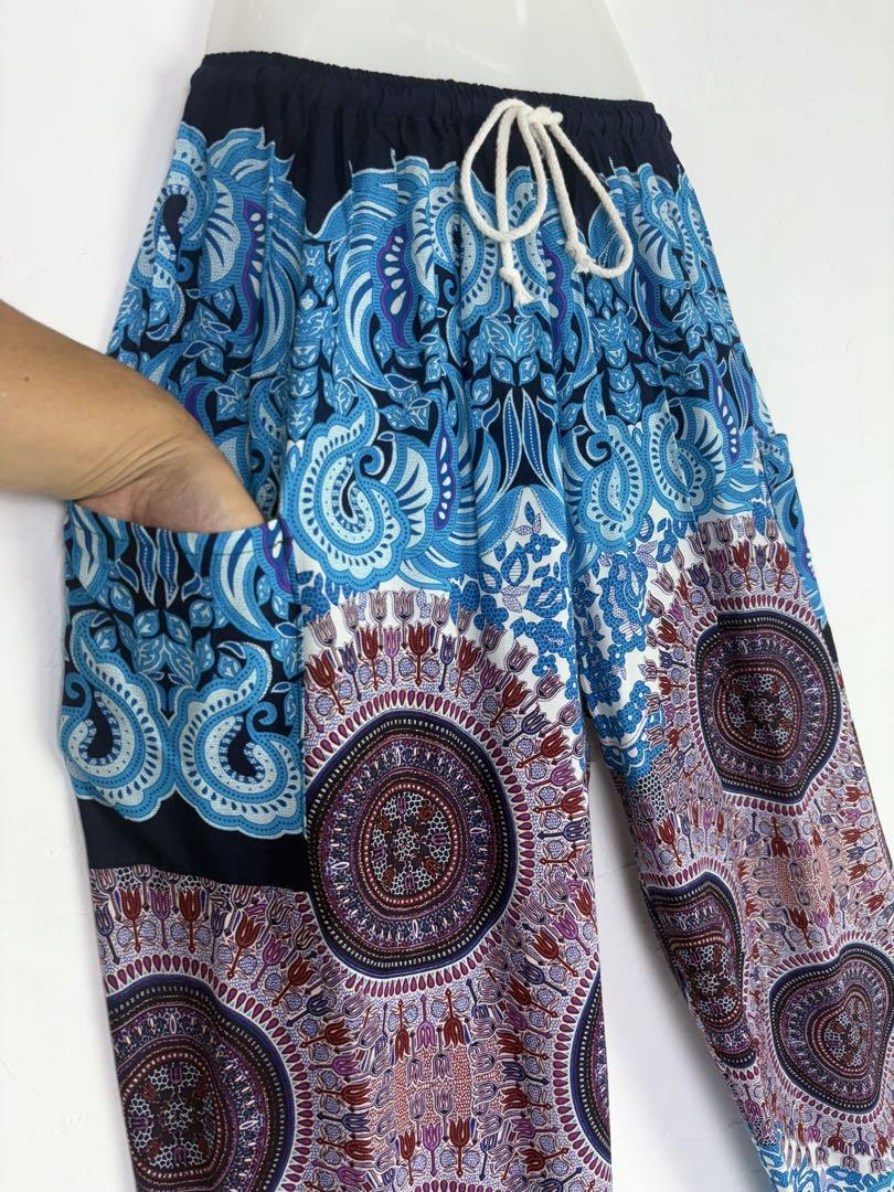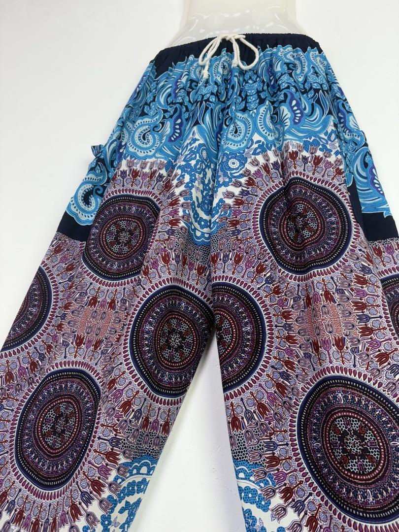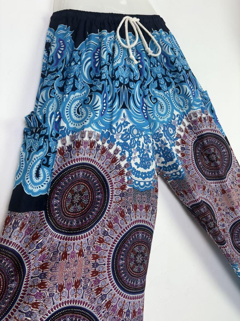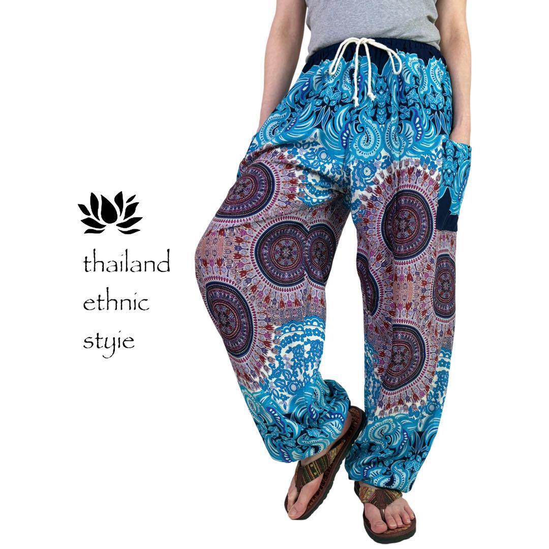 【新品】アラジンパンツ タイパンツ ヨガ タイマッサージ 男女兼用 レーヨン サルエルパンツ パジャマ【ゴムヒモ】S柄ブルー Y678 收藏