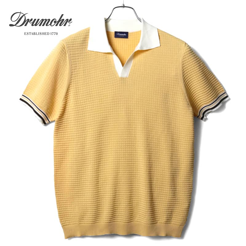 Drumohr(ドルモア) / ワッフル編みコットンハイゲージ切り替えし半袖スキッパーニットポロシャツ(D0G146W) [drm2510112-46] 收藏