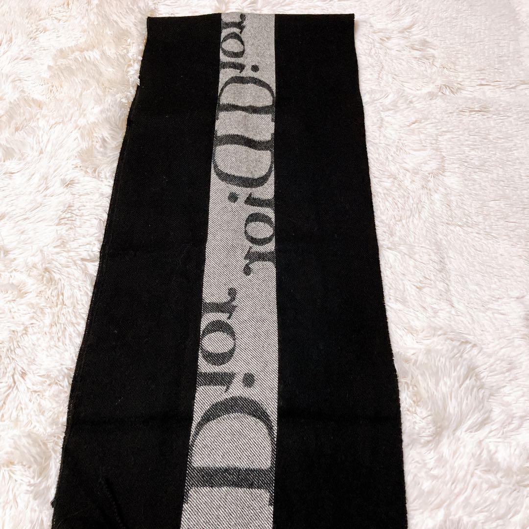 美品 ディオール dior マフラー ウール ブラック レディース 966 メンズ オブリーク トロッター 黒 收藏