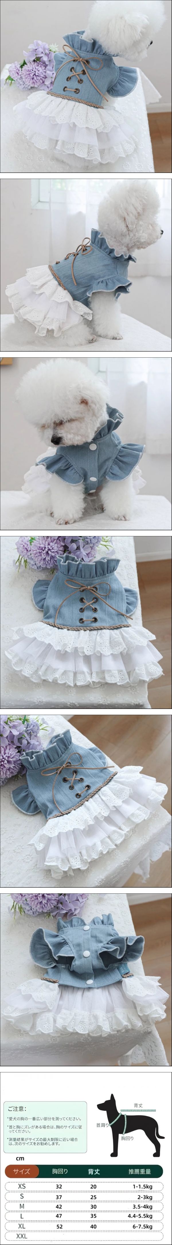 ペット用春秋ワンピース 犬猫兼用 デニムスカート フリル袖 おしゃれ 可愛い スナップボタン式 つなぎ服 小型犬 中型犬用 ペット服 | |||