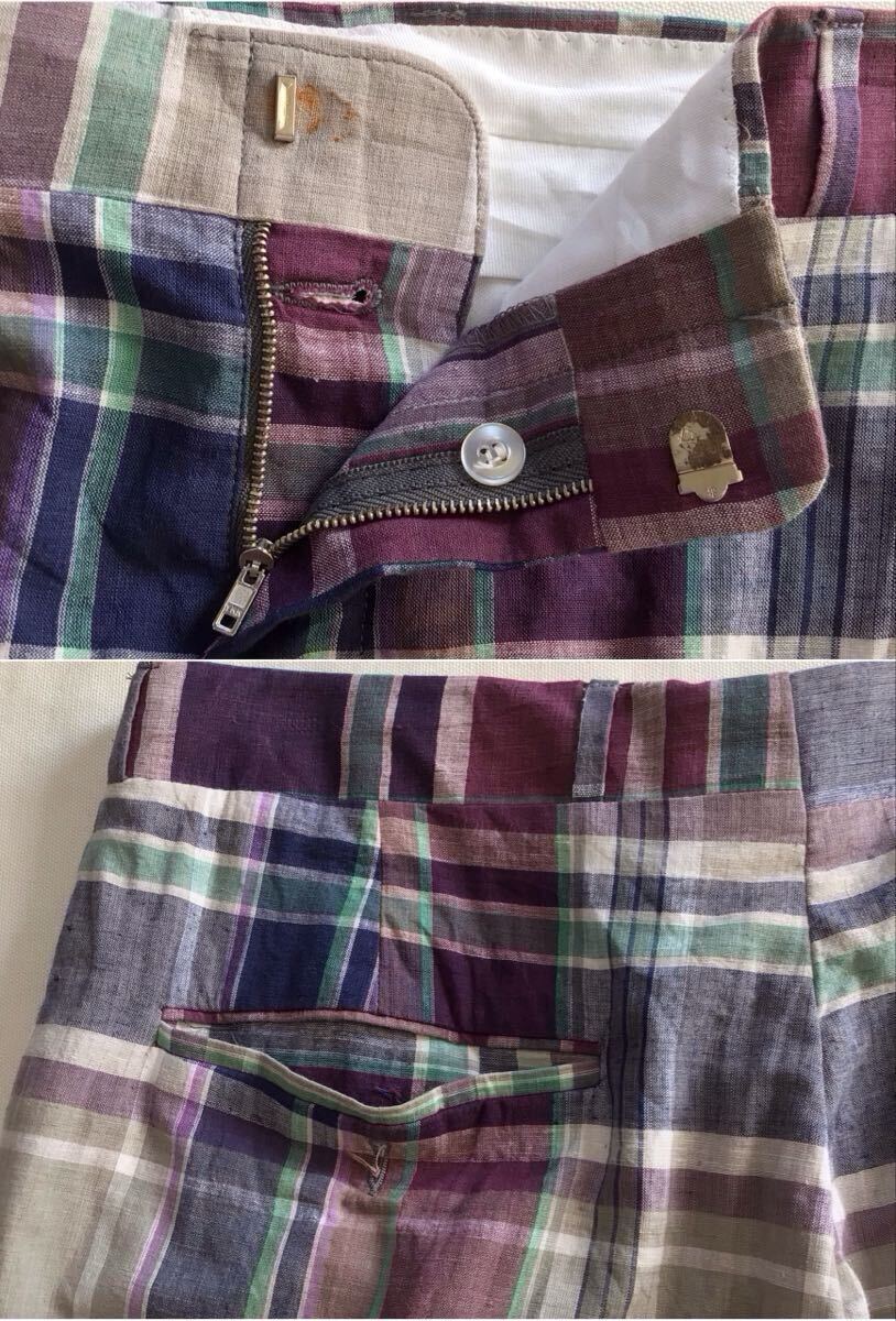ディテール:アメリカのカジュアルブランドHUNT CLUBの70年代ビンテージパンツ、柔らかなコットンの2枚仕立て、爽やかなチェック柄が目を惹きます。ゆるやかなブーツカット、程よい太さで着用していただきやすいかと思います。古着らしい良い雰囲気のアイテムですのでこの機会におすすめいたします。