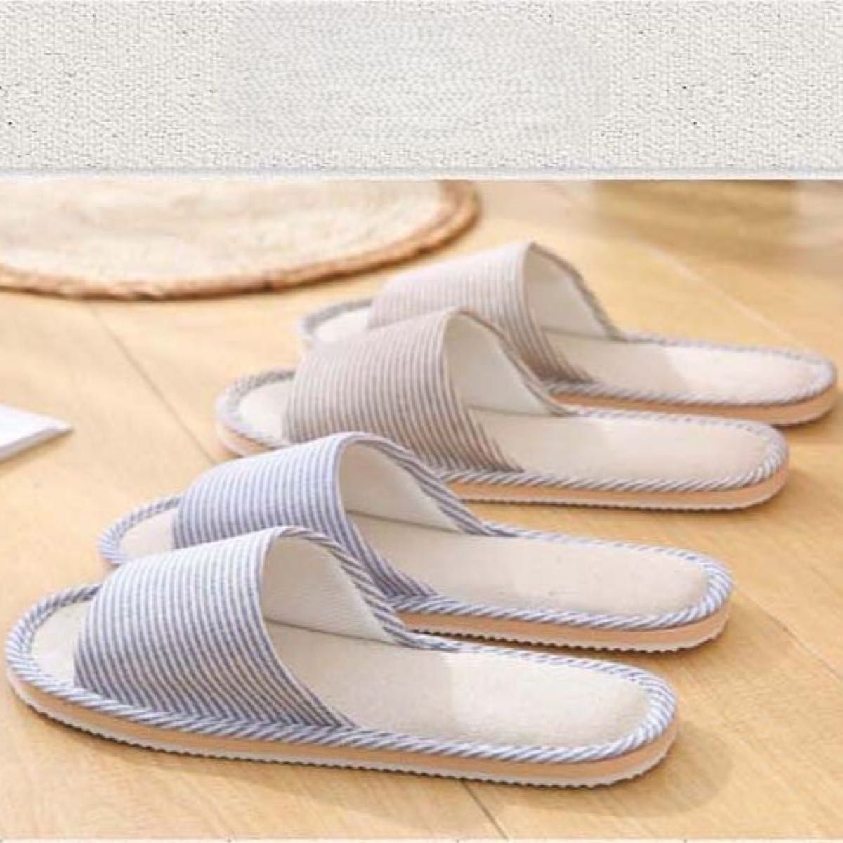 アイボリー 24.5-25 スリッパ ルームシューズ 麻 オールシーズン 通気性 前あきスリッパ 收藏