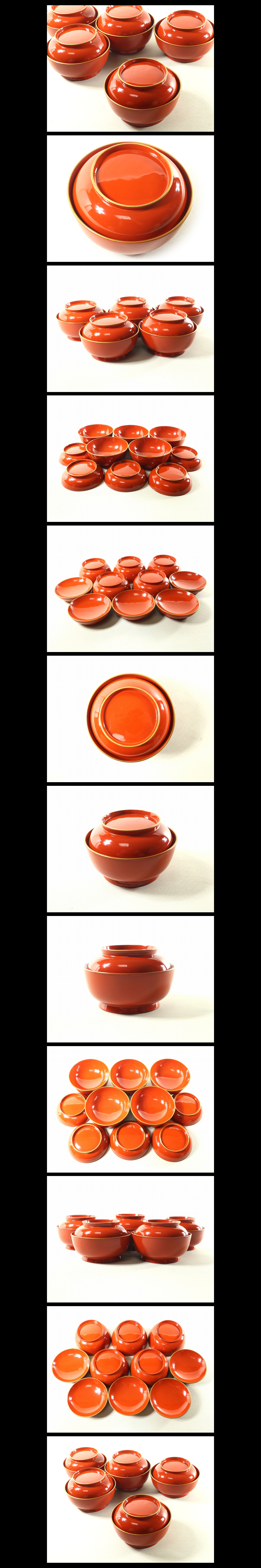 ●c055●極上【縁細菓子椀5客 朱金縁】検お茶会煎茶道具茶懐石吸物椀輪島塗●西瓜●