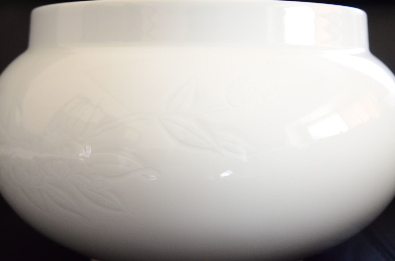 人間国宝 井上萬二 本人作 白磁花瓶 壷 花器 直径24cm 高さ16cm 重さ2.2Kg 画像16枚掲載中