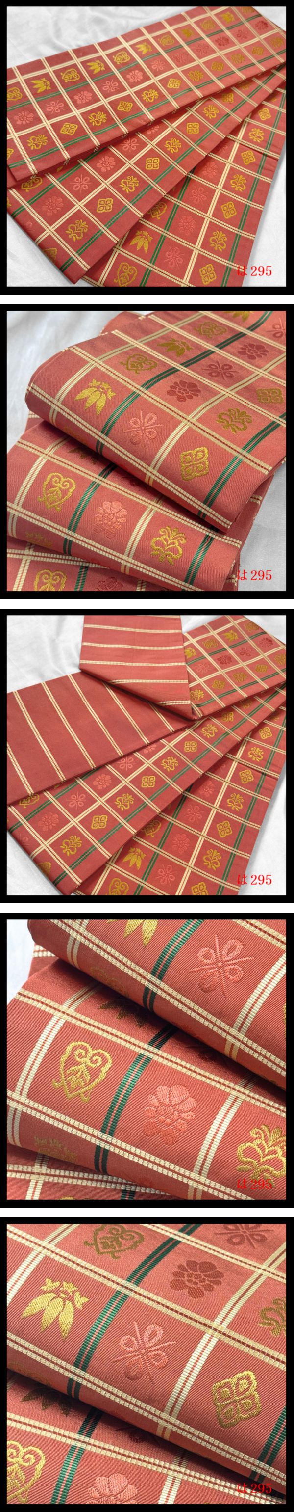 【は295】厳選逸品 半幅帯 本場筑前博多織 小袋帯浴衣帯 間道紋 紅樺色地 正絹◇検◇着物簪袋帯名古屋帯和装小物帯締め 收藏
