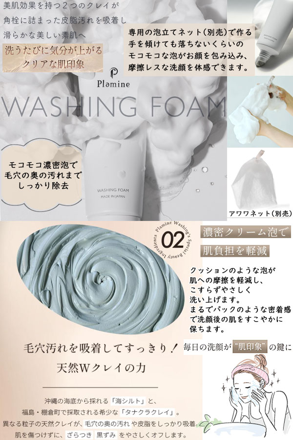 正規販売店 PLAMINE プラミネ ウォッシングフォーム 120g Wクレイ 洗顔料 洗顔フォーム もこもこ 濃密泡 敏感肌 乾燥肌 日本製 送料無料 收藏