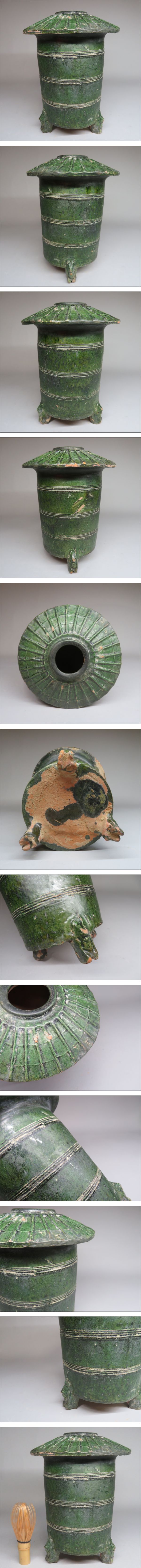 「都内コレクター所蔵品」3-3 漢時代 緑釉三足穀倉壺 中国美術 東漢時代 ◆加彩 花瓶 発掘 彩文土器 彩陶壺lot:92515 收藏