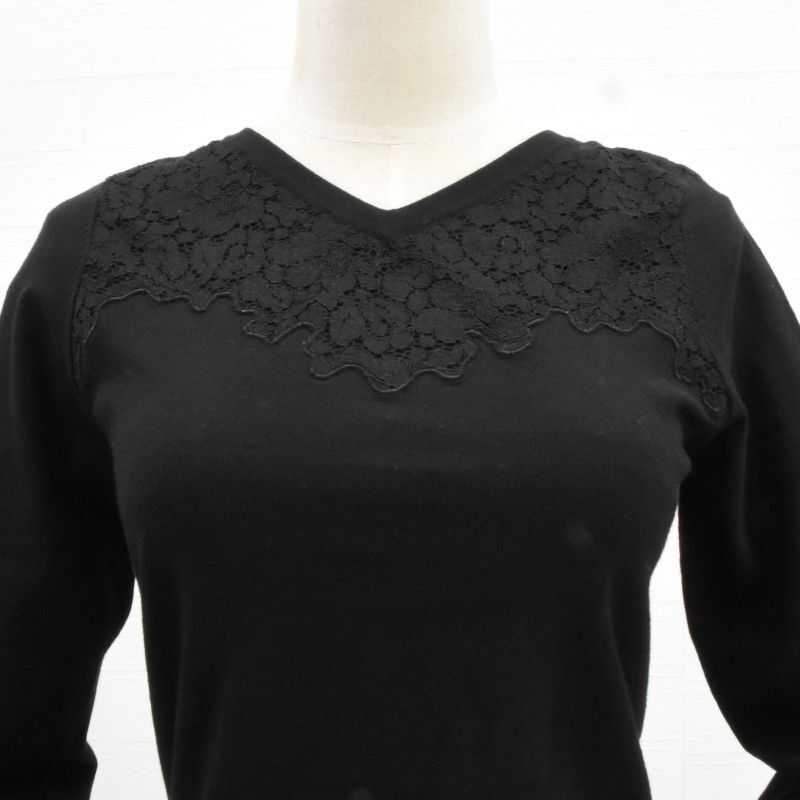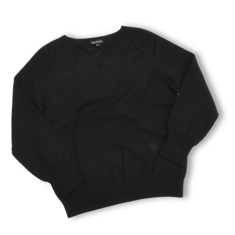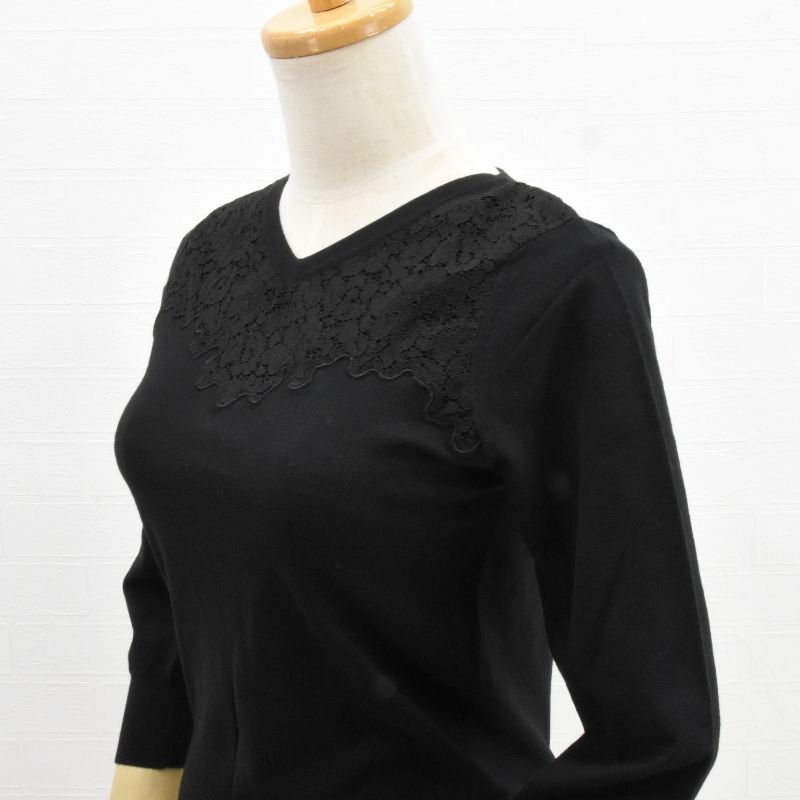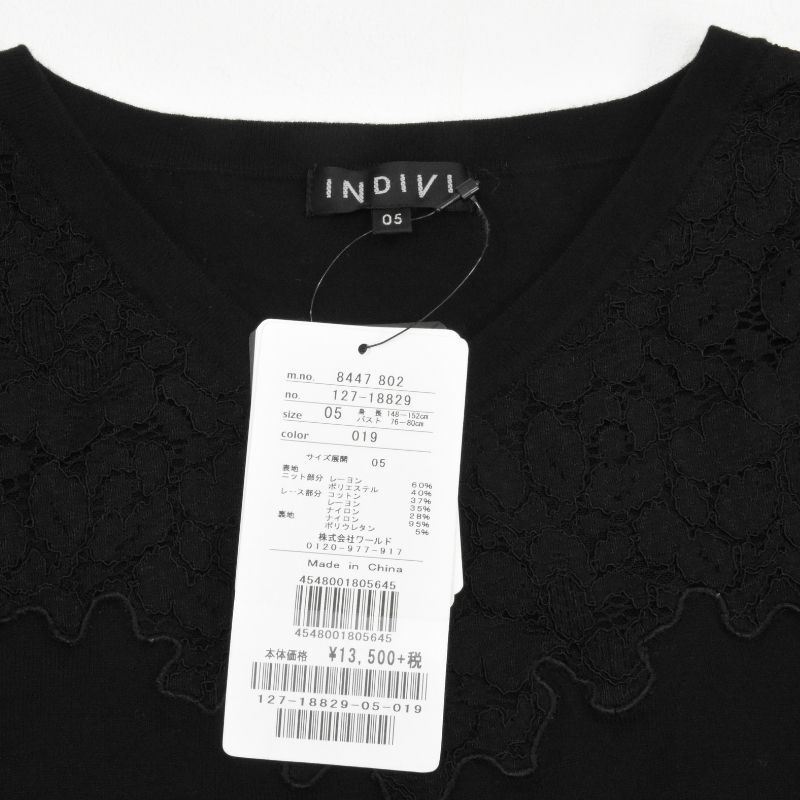 未使用品 インディヴィ レース切替 八分袖ニットプルオーバー サイズ05(S) ブラック INDIVI