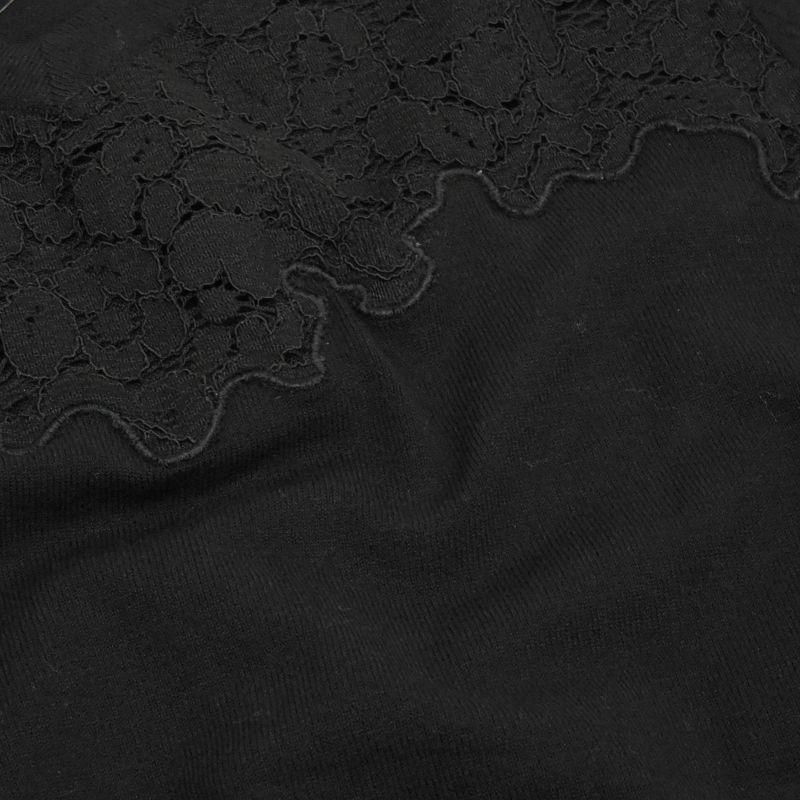 柔らかな風合いのニットにレースを組み合わせた上品なデザインで、オフィスからデイリーまで幅広く着用いただけます。