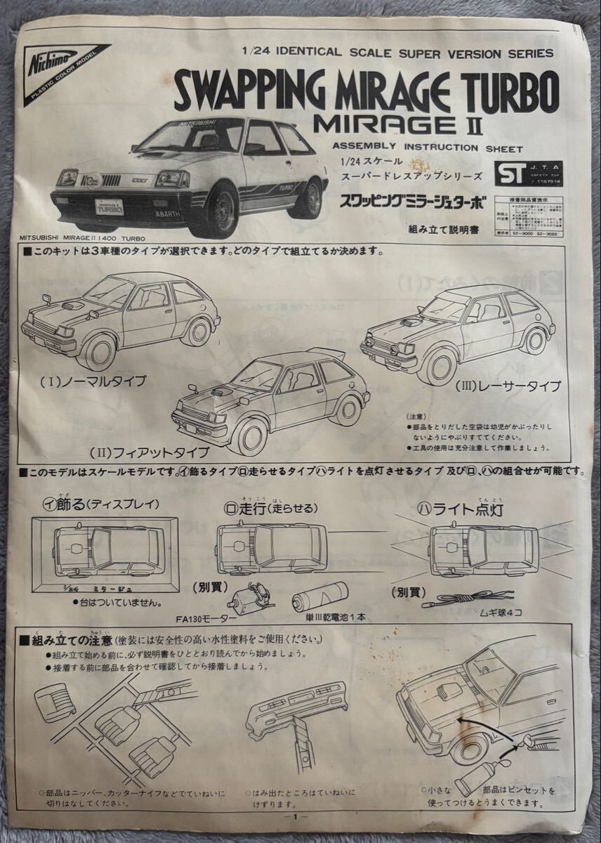 ◎ 稀少 未組立 NICHIMO ニチモ 1/24 SWAPPING MIRAGE TURBO スワッピング ミラージュⅡ ターボ MITSUBISHI 三菱 プラモ 車 乗用車 80年代 收藏