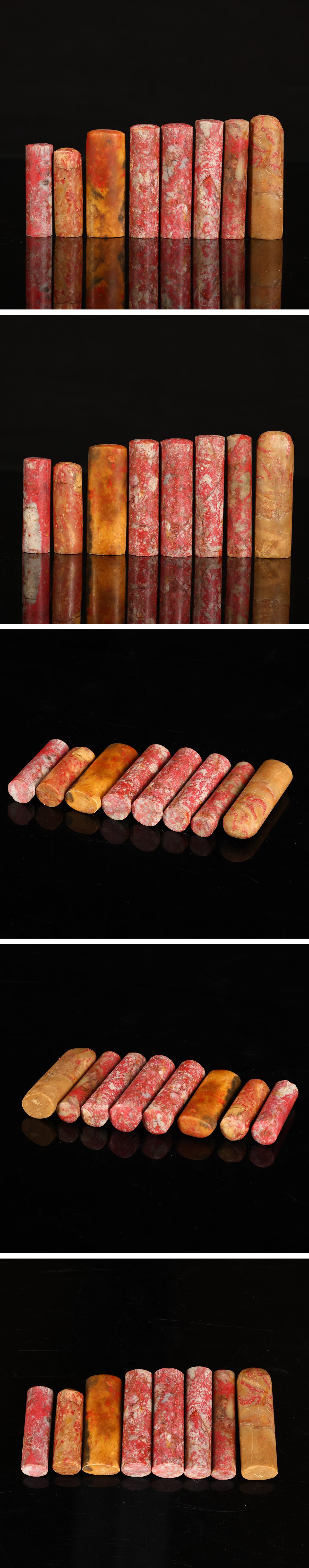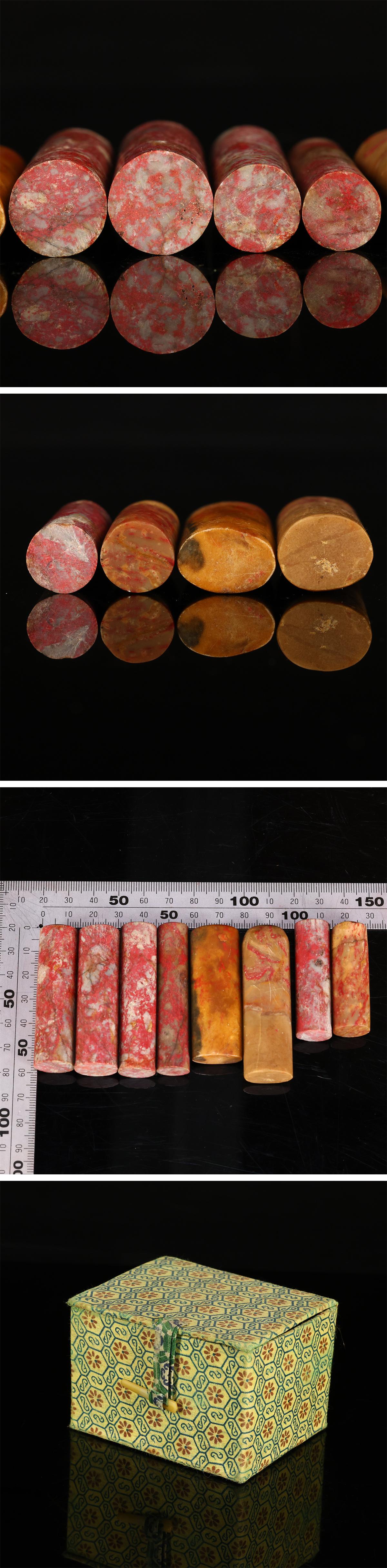 【吉】IB206 唐物 【昌化鶏血石】 印材 印章 8点 一括出品 重231g/本物保証 美品! 收藏