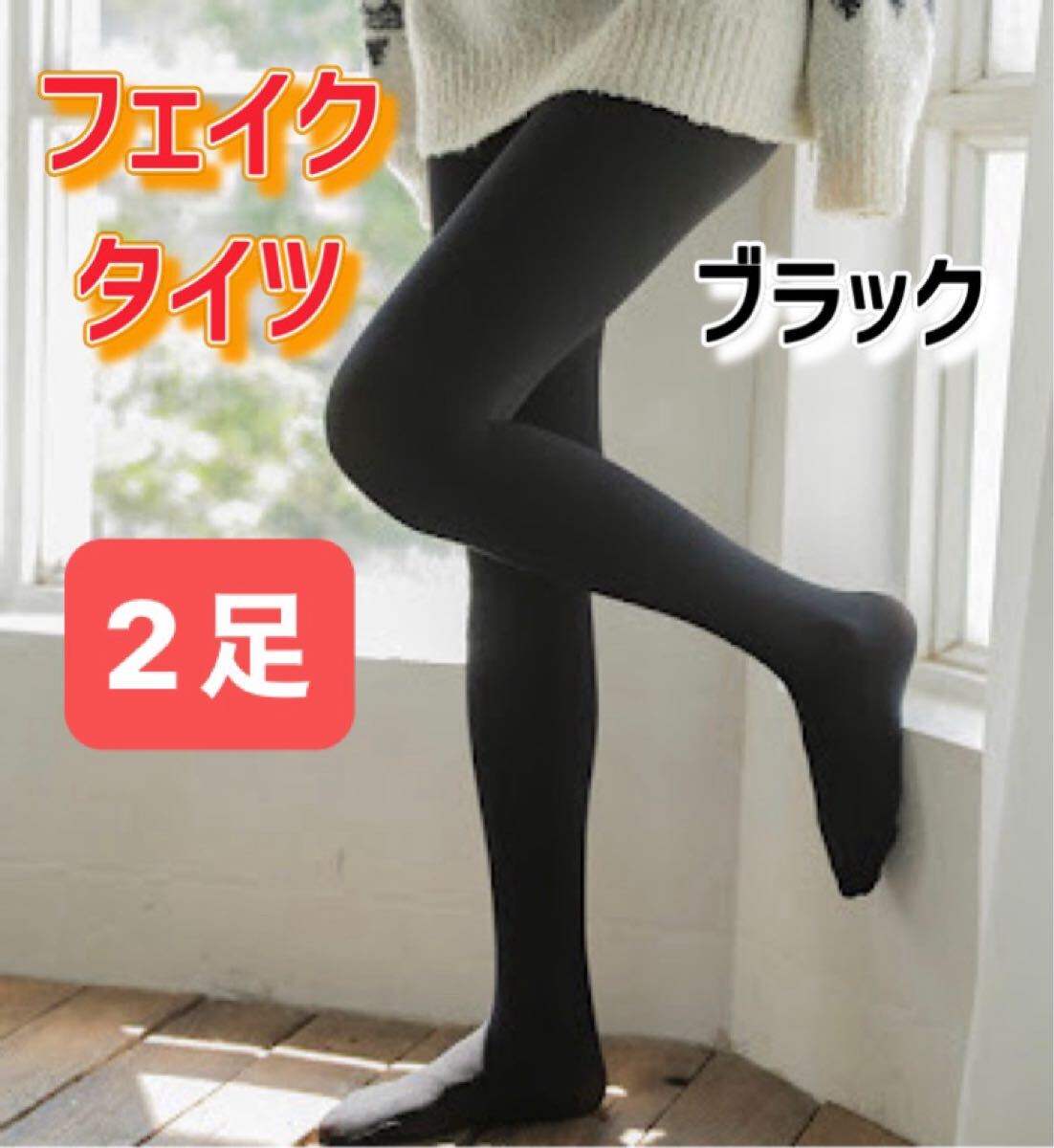 タイツ 防寒 着圧 美脚 ブラックフリーサイズ 2足set 收藏