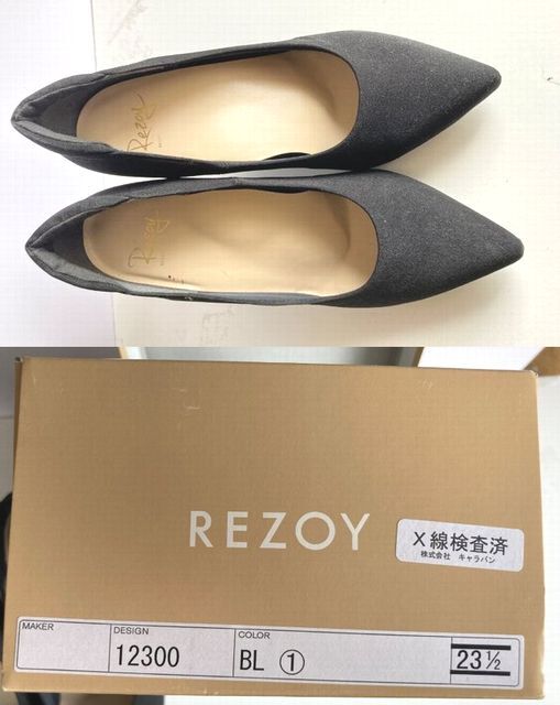 REZOYの黒のかかとパット付き イージーFITノンストレスパンプスです。