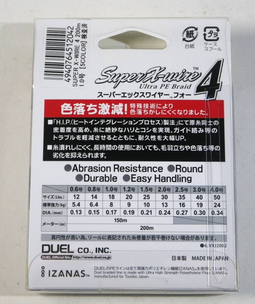 DUEL デュエル PEライン スーパーエックスワイヤー4 1.0号 200m 18lb ジギング ライトジギング タイラバ インチク SUPER X-WIRE4 10m×5色 收藏