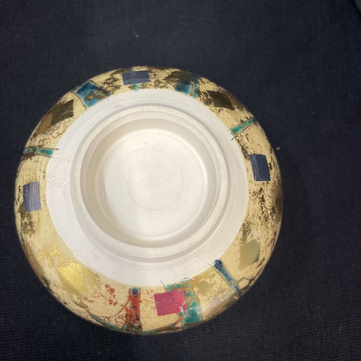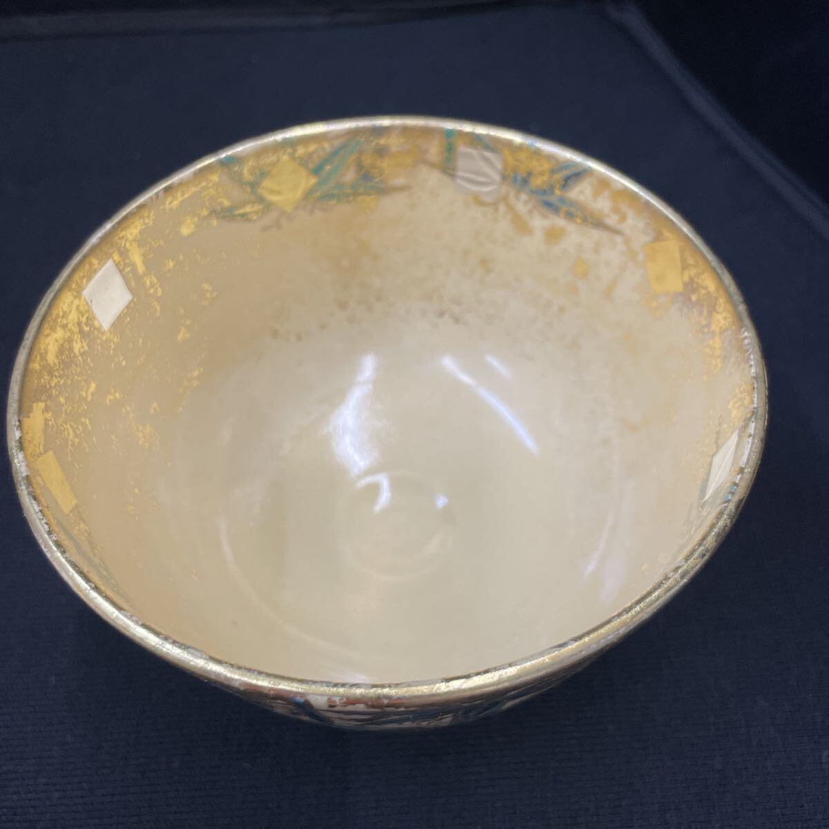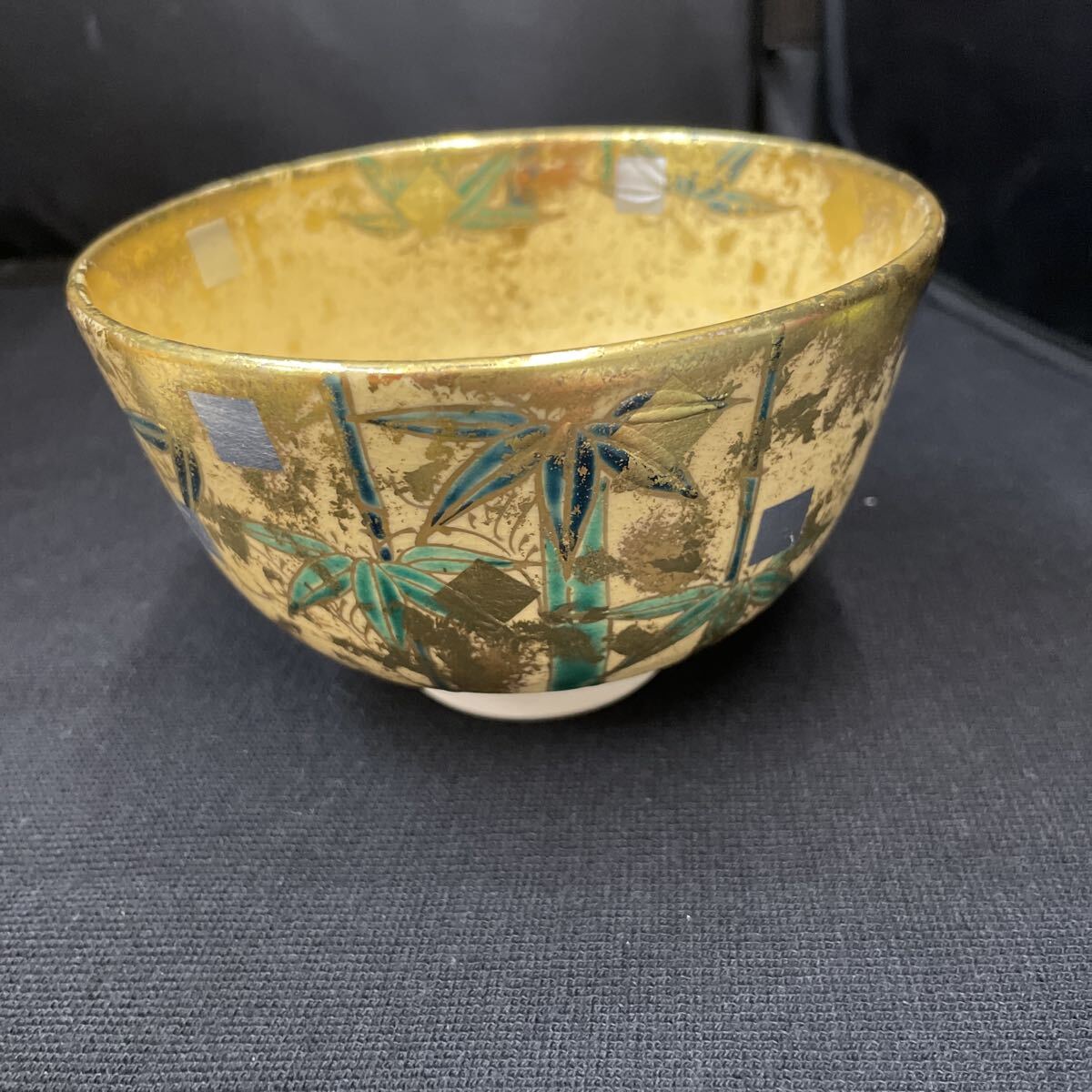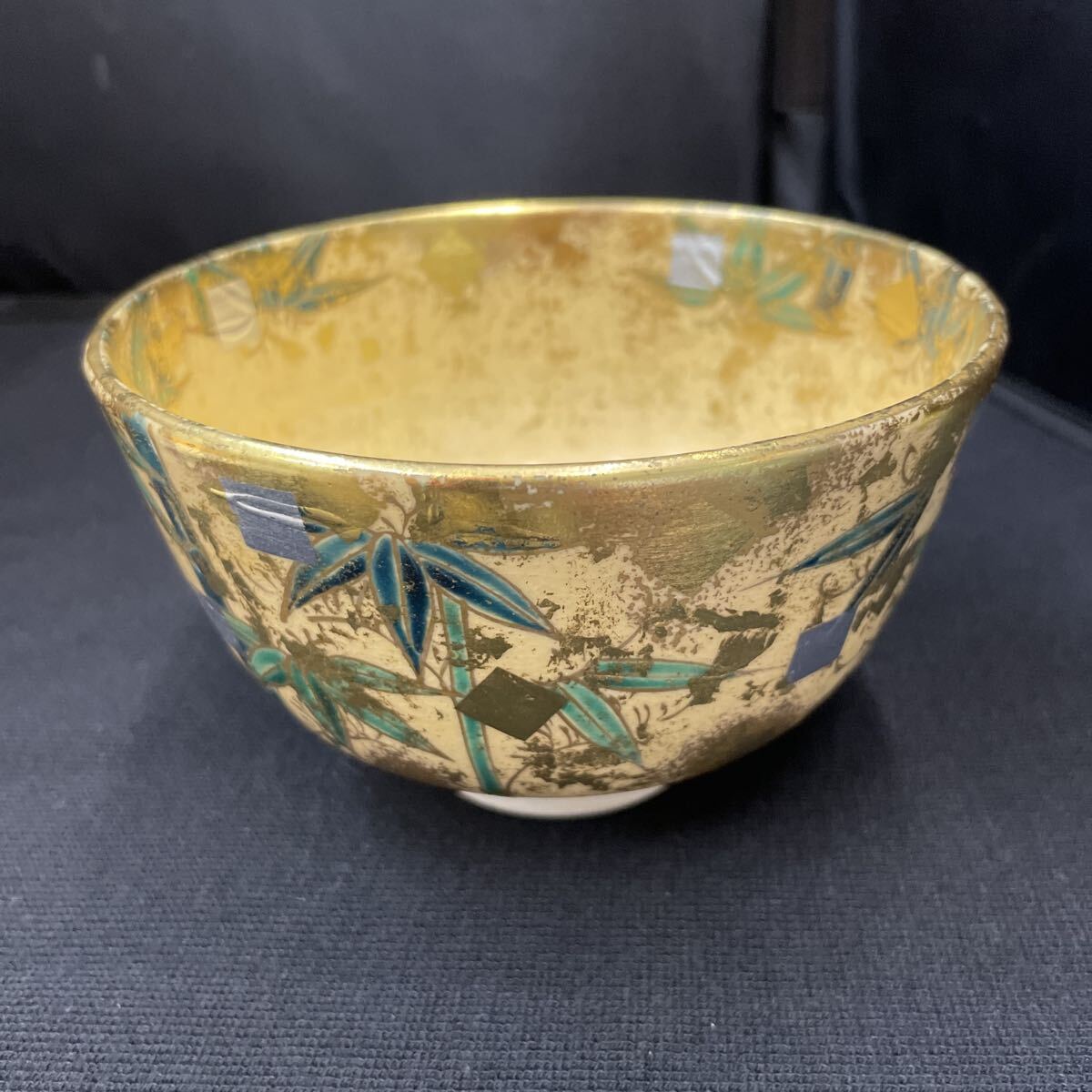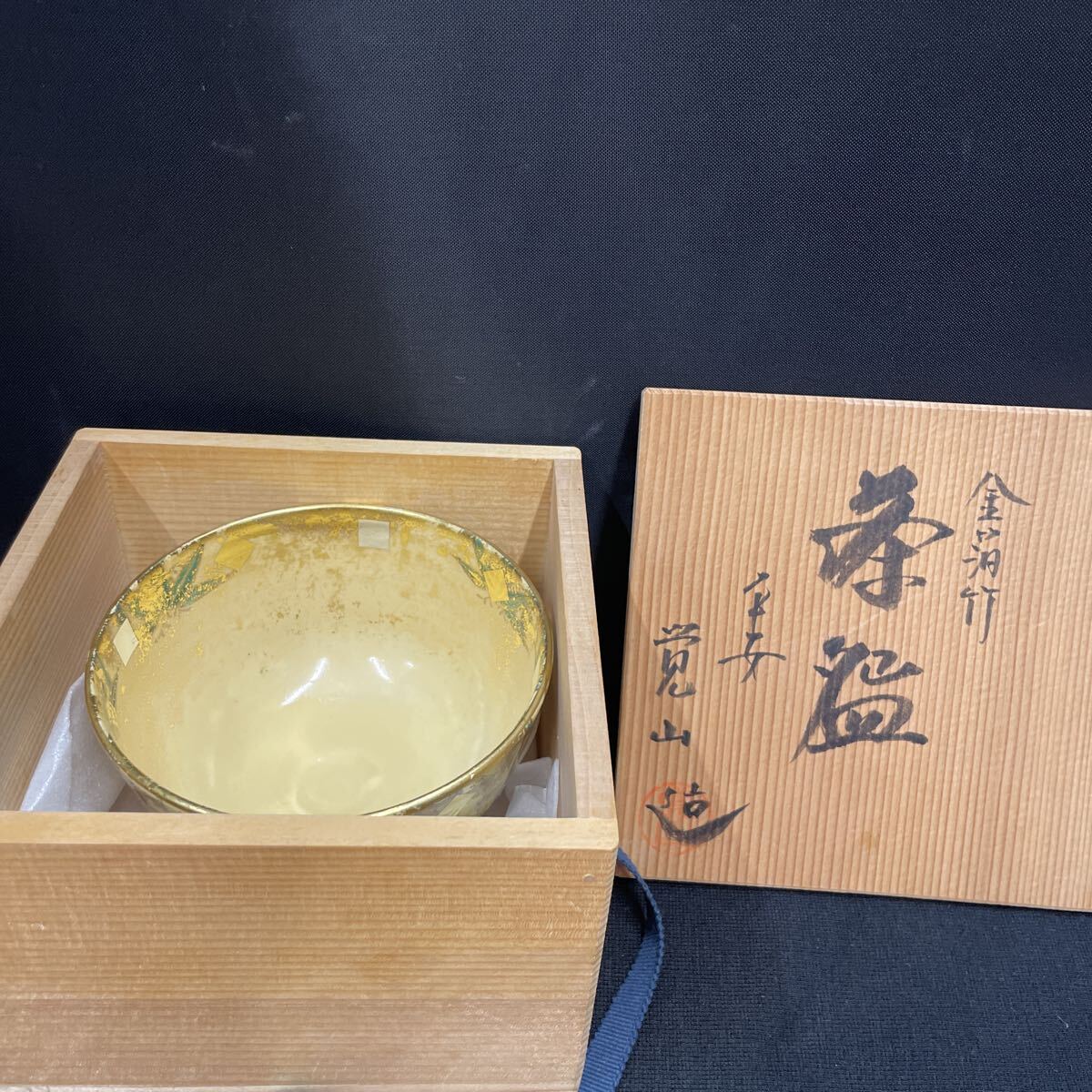 即決 未使用 京焼 茶碗 平安 覚山造 金箔竹 共布・共箱 茶道具 送料無料 收藏
