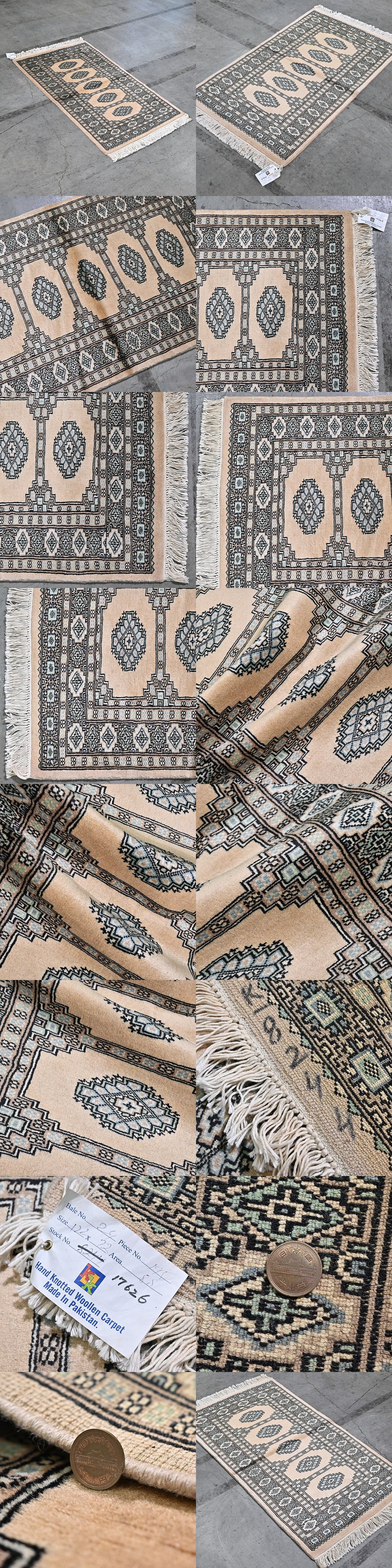 新品 未使用 パキスタン製 手織り ウール絨毯 ラグ ボハラ柄 ギュル文様 ハンドノット 羊毛 カーペット マット ホテル 応接室 P-126 收藏
