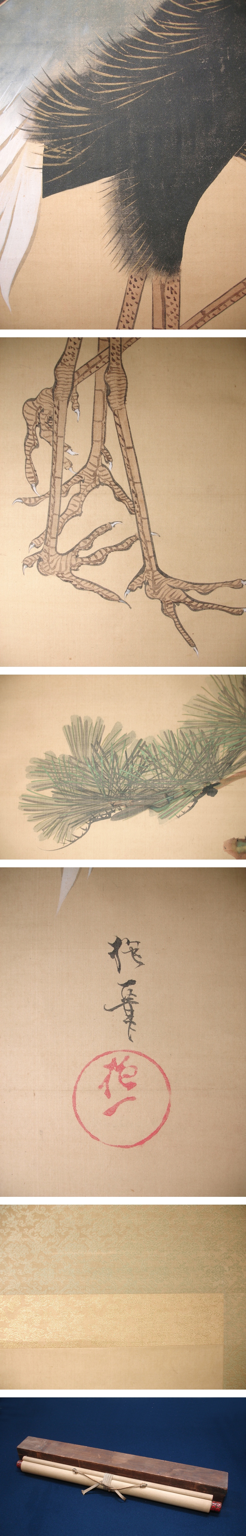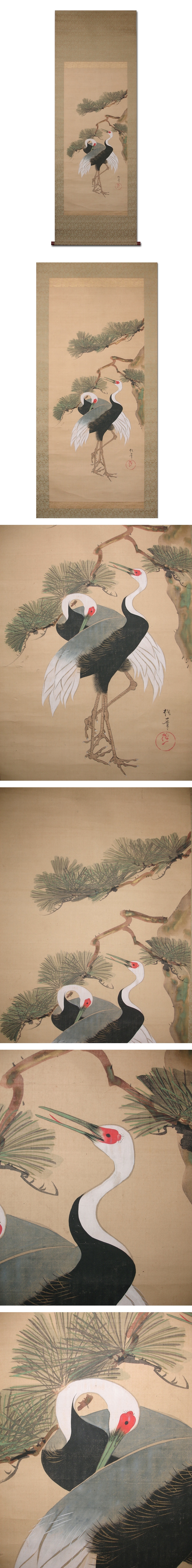 慶應◆江戸琳派の第一人者 伝【酒井抱一】真筆 絹本著色 松鶴図 光琳写しの代表的画題 掛軸 收藏