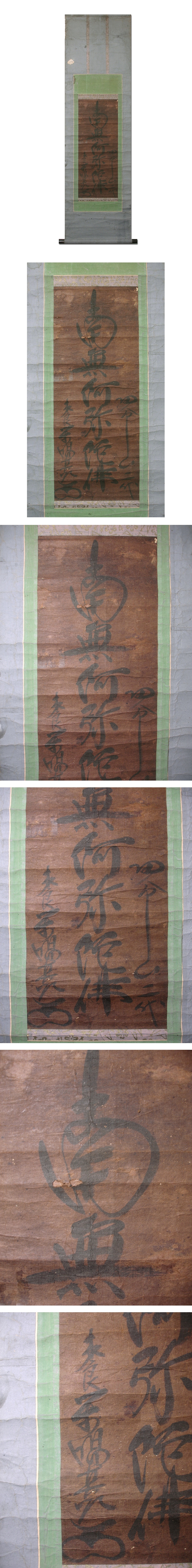 慶應◆江戸後期の名高き遊行僧【木喰上人】真筆 墨蹟六字名号 南無阿弥陀佛 一行書掛軸 京都老舗古美術店取扱品(図録用生写真付) 收藏
