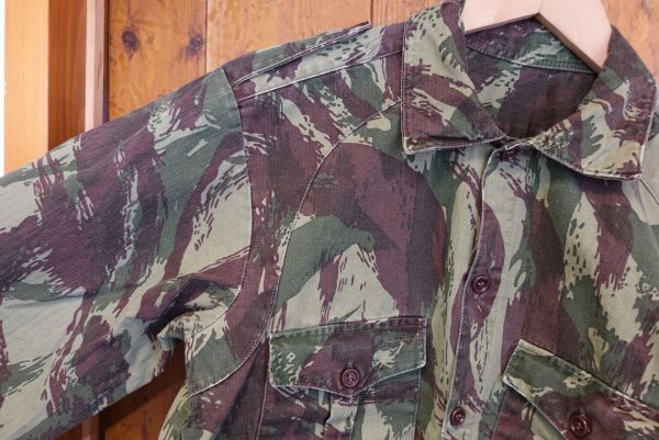 ビンテージ■ポルトガル軍 実物■リザードカモ ヘリンボーンツイル シャツ■ユーロ ミリタリー ジャケット 60s 70s ■迷彩 長袖 HBT 收藏