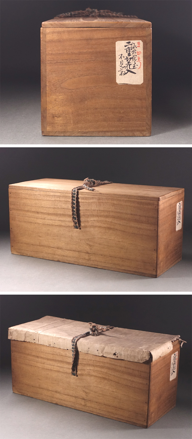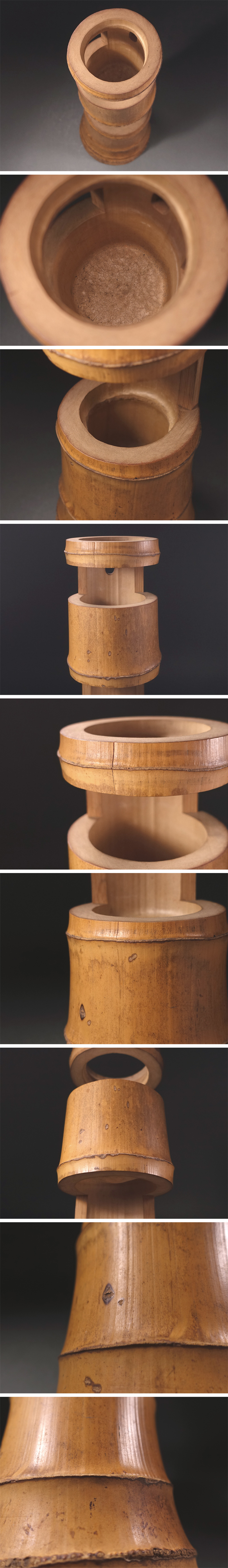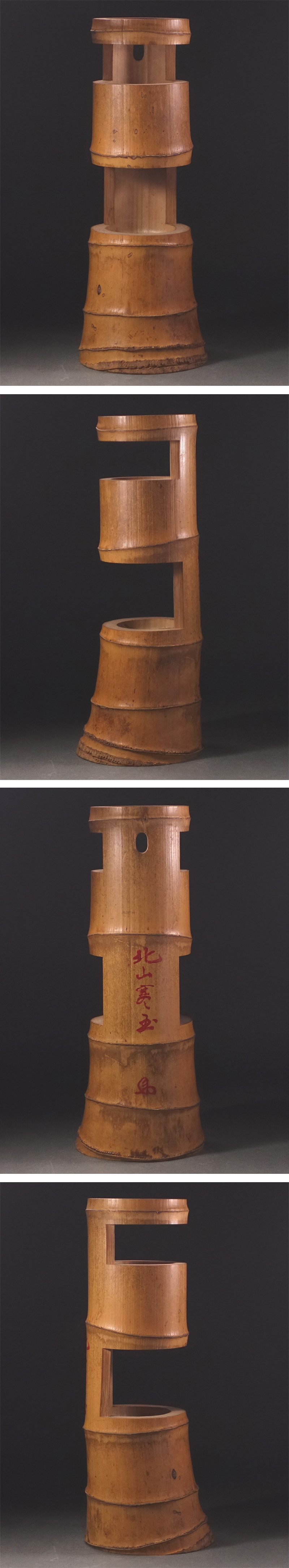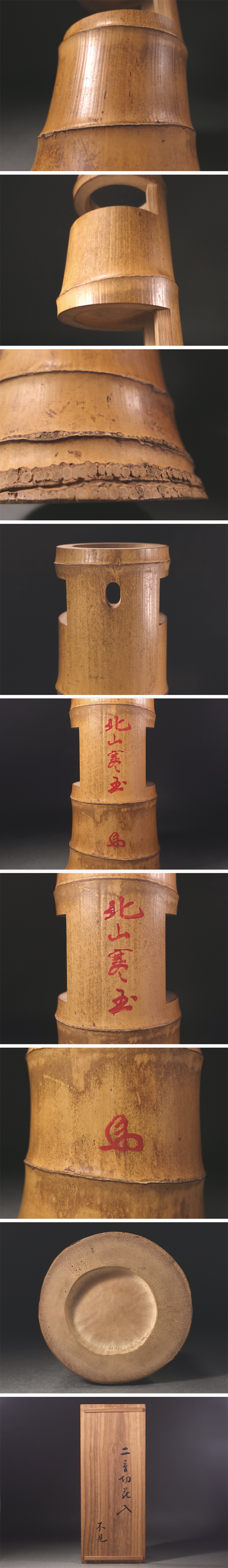 ∇花∇裏千家九代【石翁宗室(不見斎)】自作 朱漆在判 二重切竹花入 銘「北山寒玉」 共箱付 收藏