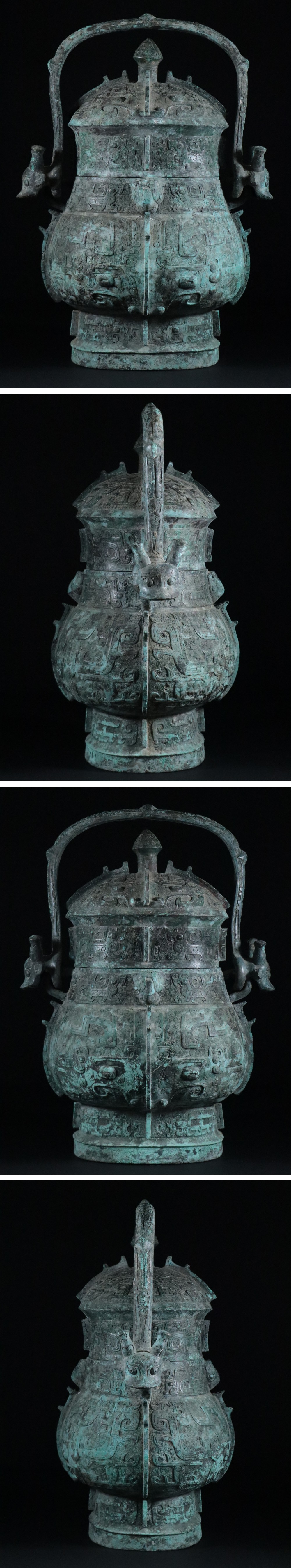 中国 古玩 青銅器 古銅 銅製 漢詩 宝用 獣面 鳳凰 饕餮紋 提手付 蓋物 特大 酒壷 / 酒器 礼器 神具 神祭具 中國 唐物 時代物 / 高さ56,5cm 收藏