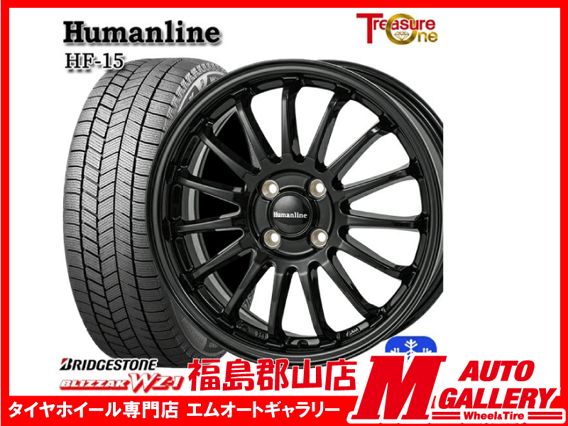 郡山 新品 スタッドレスホイールセット1台分 ヒューマンラインHF15 15x5.5J+50 4H100 BK ブリザックWZ1 185/60R15 84Q E13ノート等 收藏
