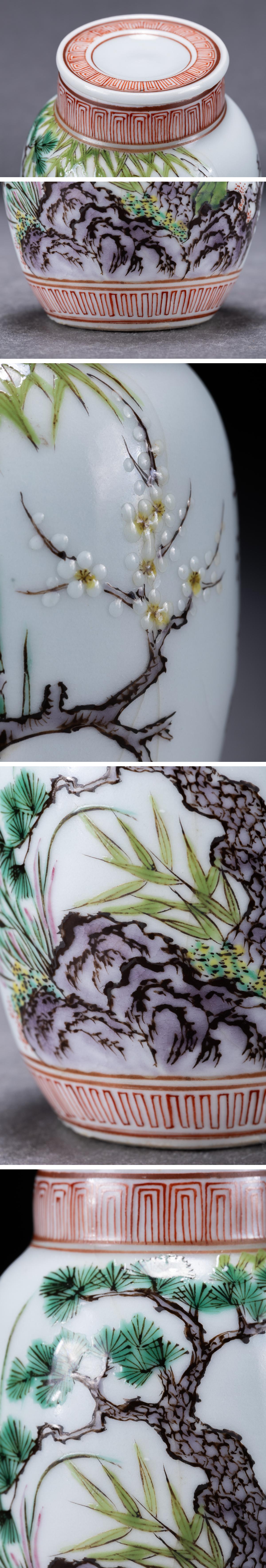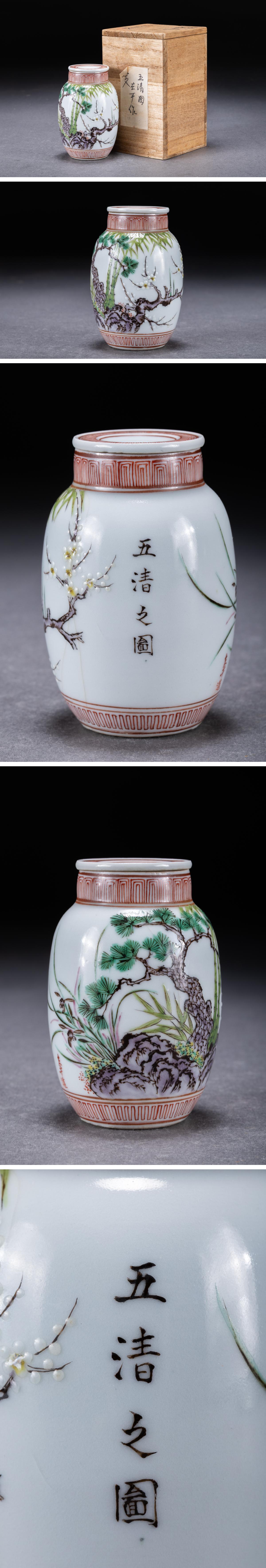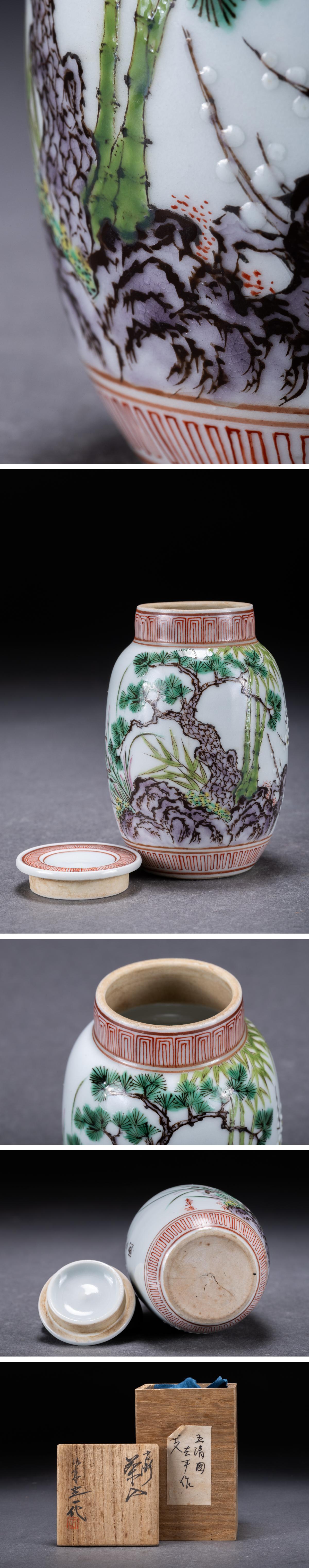 【華】時代舊藏 清時代 中国伝来 粉彩花卉紋茶入 共箱 茶煎道具 時代物 古美術 骨董品A25070319-PV 收藏