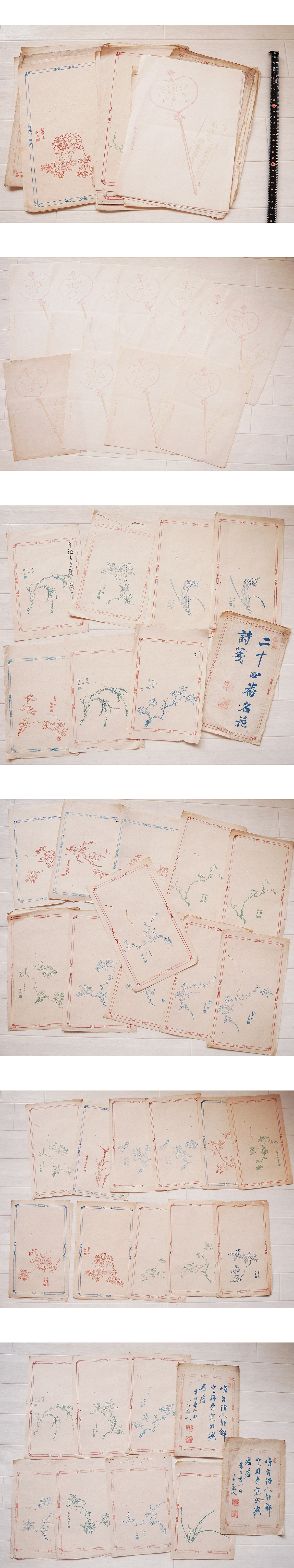 【真作】『 二十四番名花詩箋ほか 50枚 木版画 』古文書 中国唐物唐本 收藏