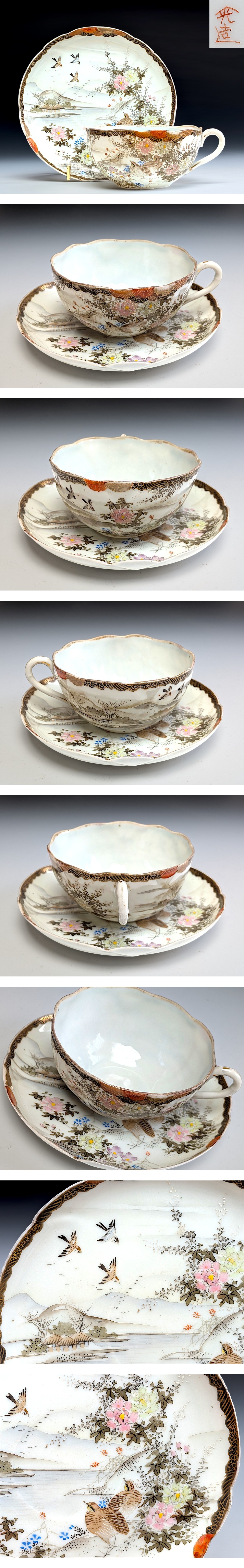 オールドニッポン 金彩 鶉図紋 カップ&ソーサー | ||||