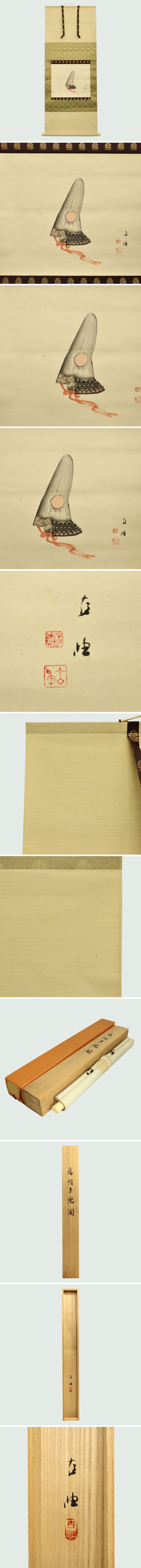 真作保証 佐藤古岫 「烏帽子兜図」 紙 本共箱 備後 掛軸 書画 骨董品 古美術品 1437sbzN 收藏