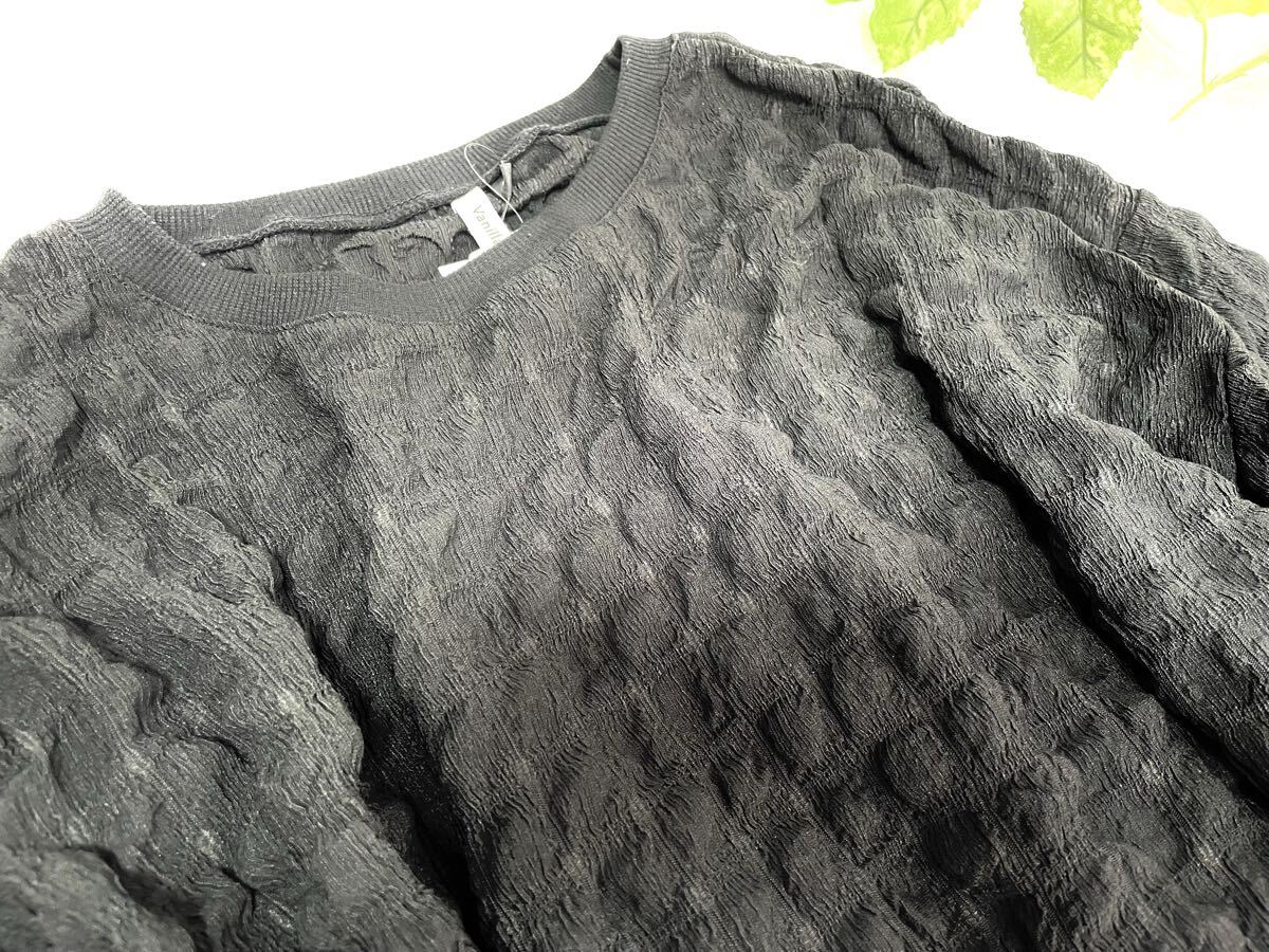 f■4L■新品■きれいめカジュアル*ドロップショルダー*ポップコーンプルオーバーTops*ふわっとぽわん袖■黒 收藏