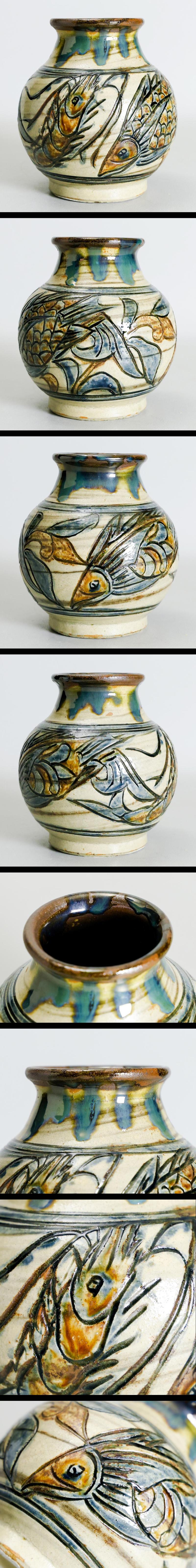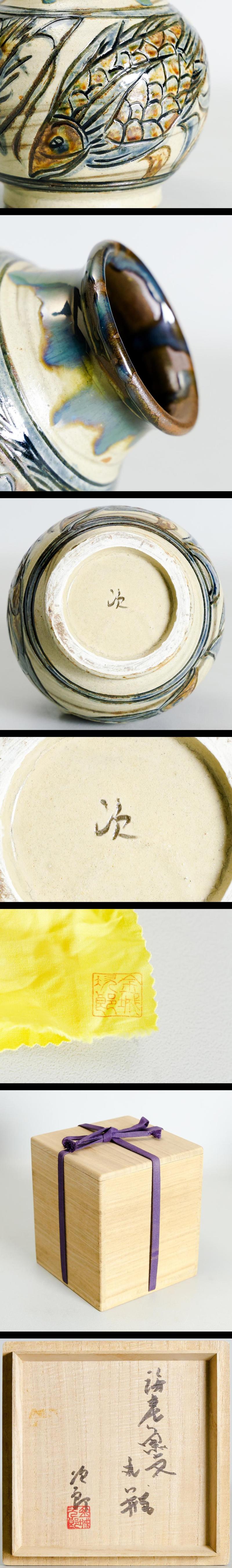 【真作】【WISH】金城次郎「海老魚文 丸瓶」 壷屋焼 共箱 高さ17cm 〇人間国宝 琉球陶器 壺屋巨匠 #25096027 收藏