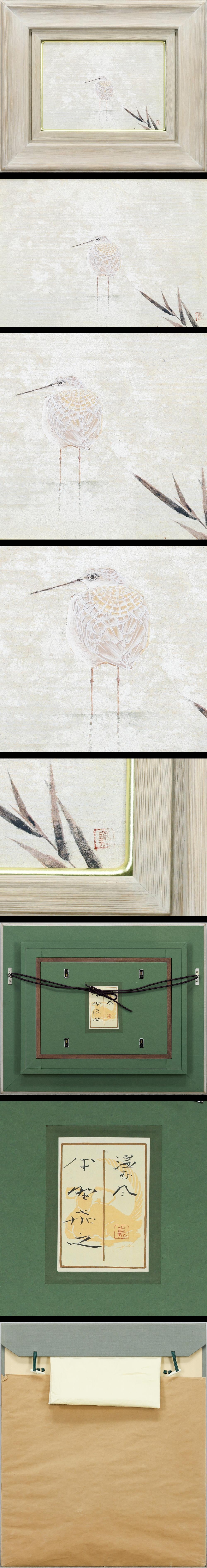 【真作】【WISH】中野嘉之「温む風」日本画 4号 プラチナ箔使用 共シール ◆春風に羽を休める小鳥 〇物故巨匠 #25102343 收藏