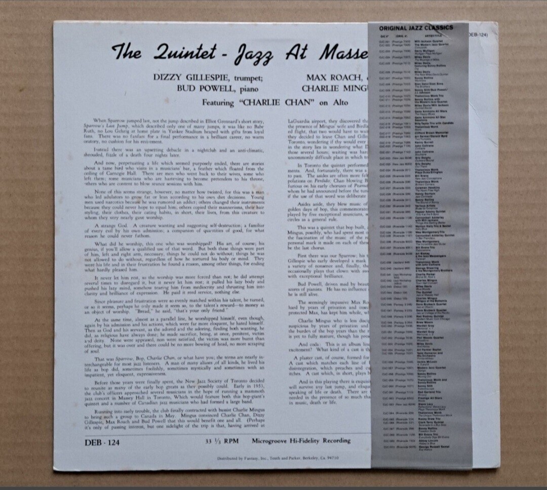 輸入盤帯付LP ◎The Quintet『Jazz At Massey Hall』OJC-044(DEB-124) Original Jazz Classics / Debut / Fantasy. Diggy Gillespie 64891J 收藏