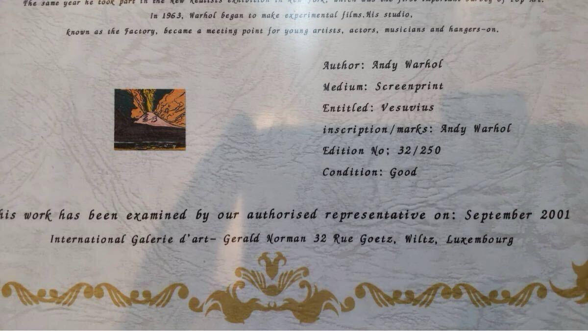 【真作★限定250部★直筆サイン&証明書あり】アンディ・ウォーホル 「Vesuvius」/額装あり/スクリーン 検:火山/ 收藏