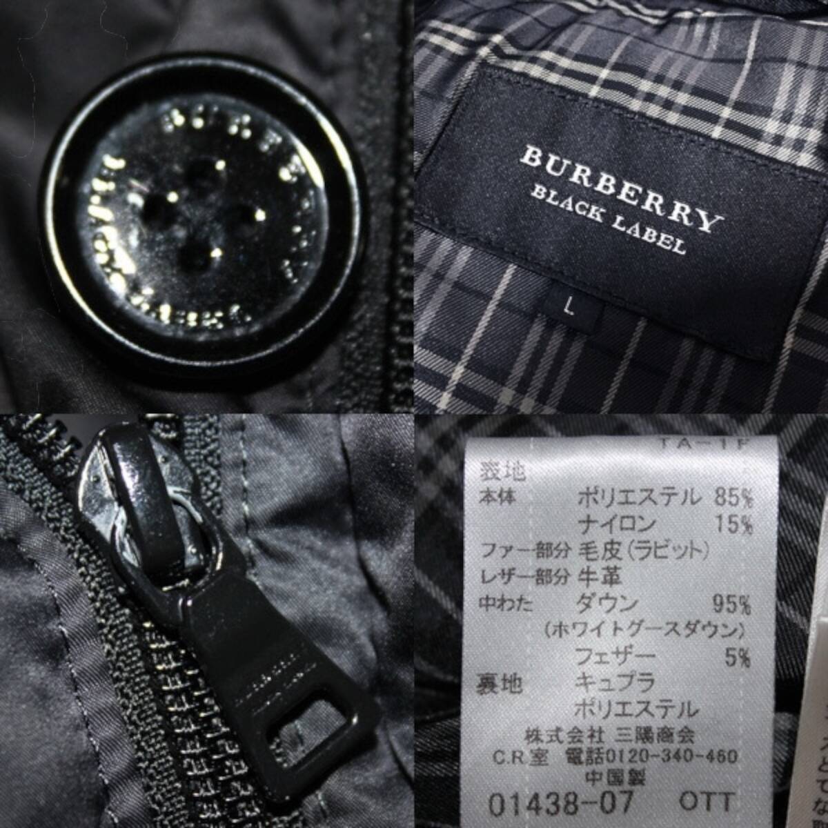 極美品 バーバリーブラックレーベル ノバチェック ラビットファー 2WAY ダウントレンチコート L 黒 ダウンジャケット BURBERRY BLACK LABEL 收藏