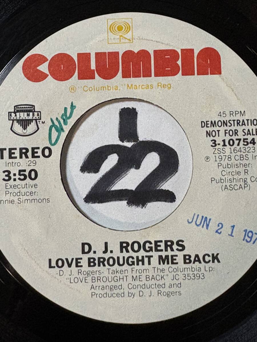 試聴 D.J. ROGERS LOVE BROUGHT ME BACK 両面NM 1978/Bladey Mae Beat 57 by 9th Wonder ネタ/ラリーレヴァン Danny Krivitプレイ