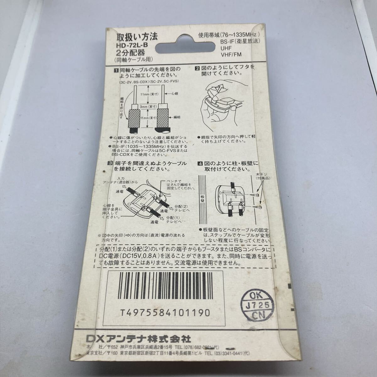 分配器 DXアンテナ 同軸ケーブル用 電流通過型 BS対応 HD-72L-B 收藏