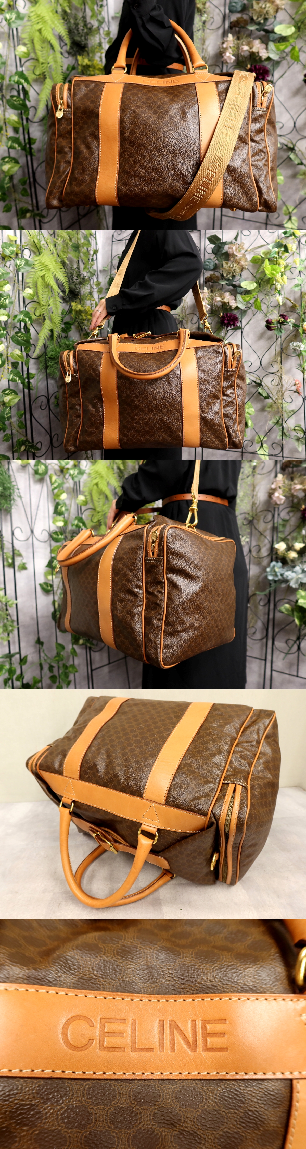 ●超美品●CELINE セリーヌ●マカダム●PVC カーフ レザー 本革●2way ボストン バッグ●ブラウン系●ゴールド金具●大容量●旅行●Js61499 收藏