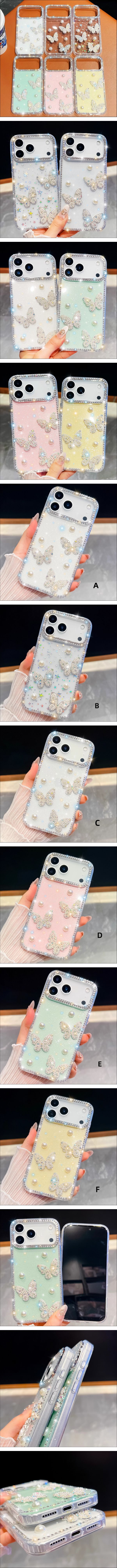 iPhone Air (6.6インチ) 用 ケース キラキラ IMD フラッシュパウダー 珍珠&バタフライ デザイン 防 保護カバー 韓国・日本風 | |||
